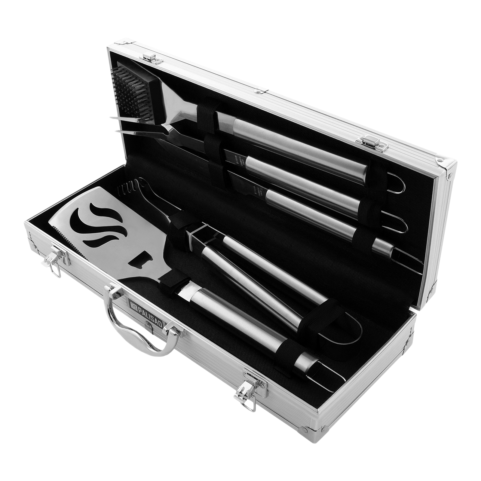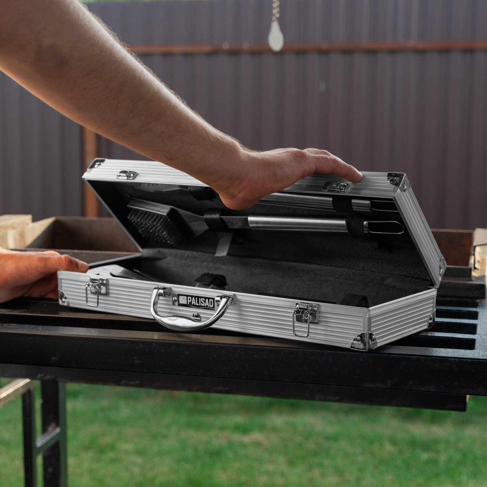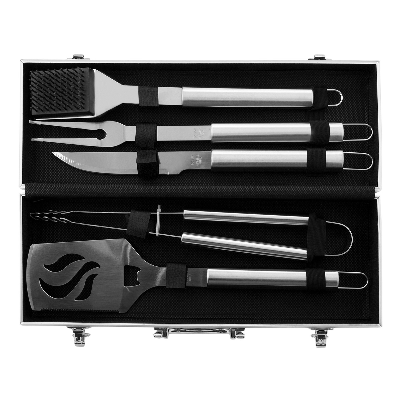Лопатка - 1 штВилка - 1 штЩипцы - 1 штНож - 1 штЩетка - 1 штАлюминиевый кейс - 1 шт