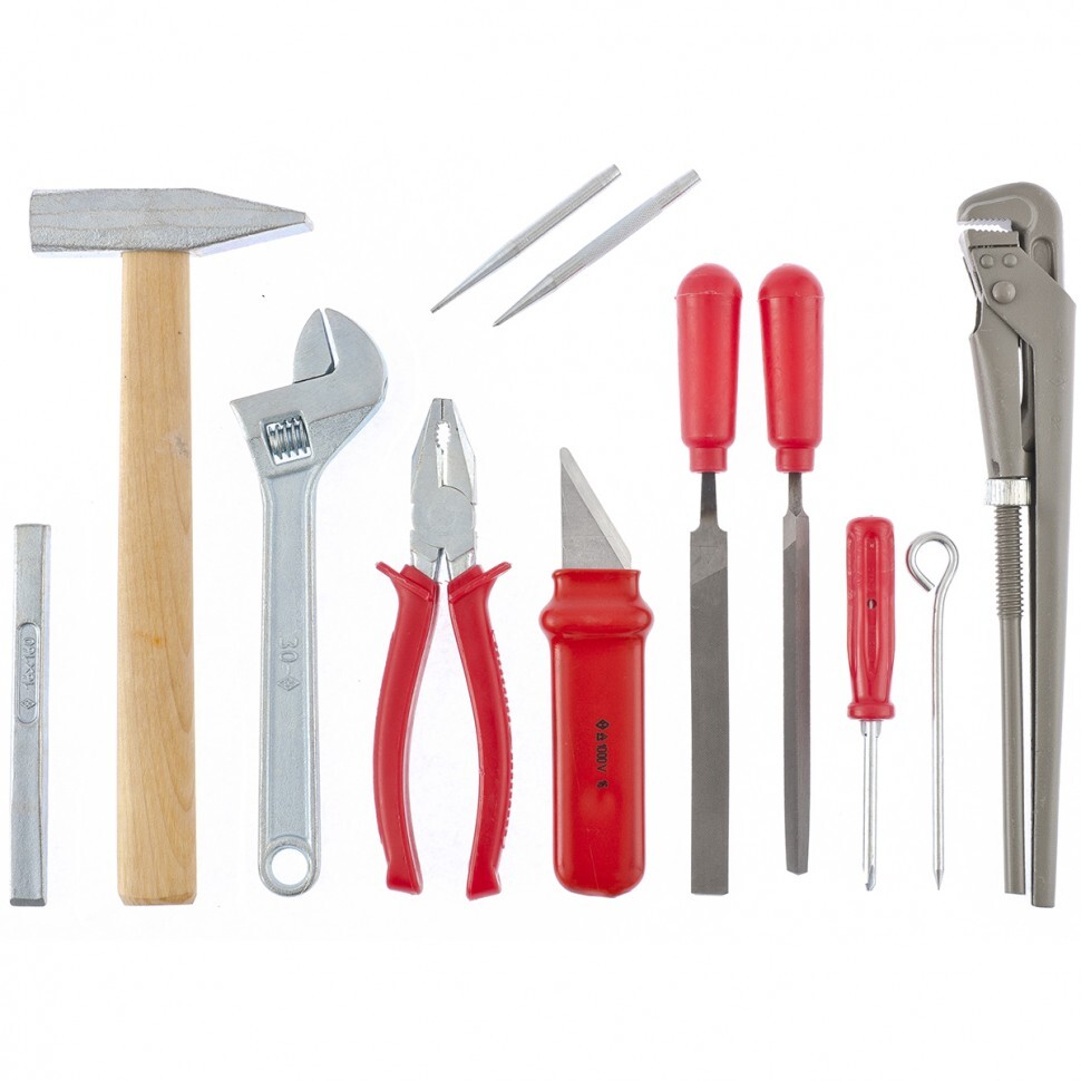 Напильник плоский насечка №2 - 1 штНапильник трехгранный насечка №3 - 1 штЗубило 16 x 160 - 1 штКлюч разводной А-250 (КР-30) - 1 штБородок 2 мм - 1 штКернер 2 мм - 1 штПлоскогубцы - 1 штМолоток - 1 штЧертилка - 1 штКлюч трубный - 1 штОтвертка комбинированная - 1 штНож прямой - 1 штСумка - 1 шт