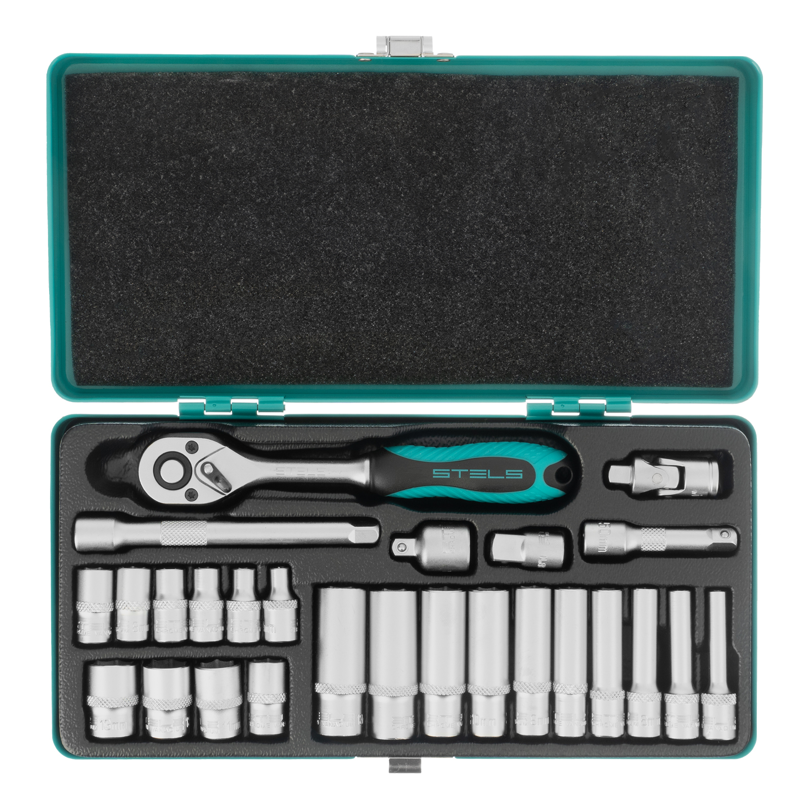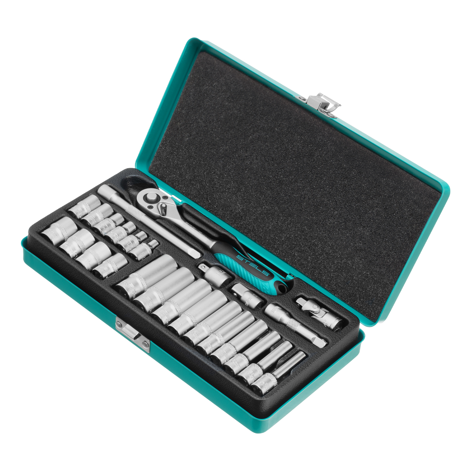 Набор торцевых головок с трещоткой, 1/4", 26 предметов Stels