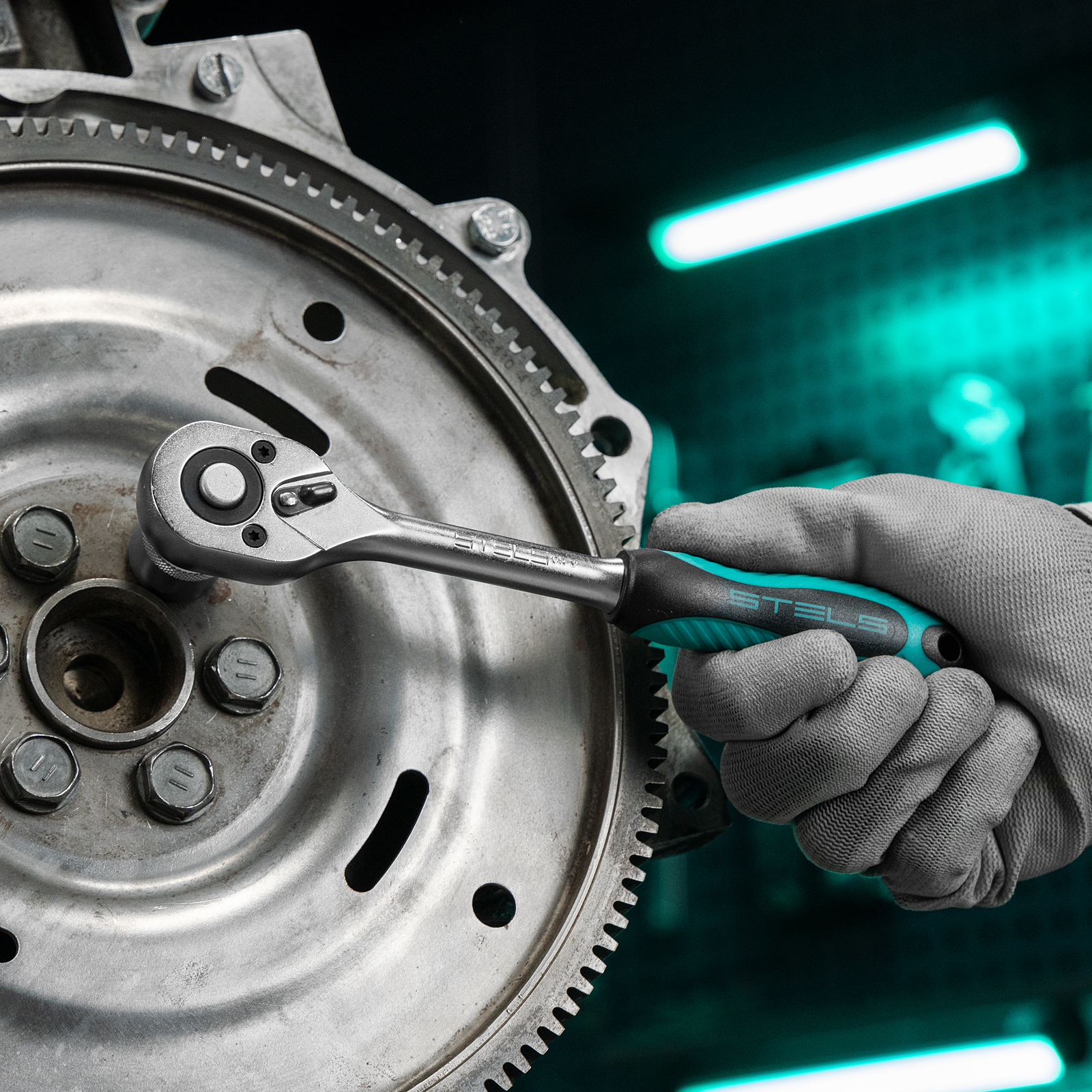 - Удобная работа в труднодоступных местах — трещотка с 72 зубьями позволяет вращать крепеж плавно и мягко.