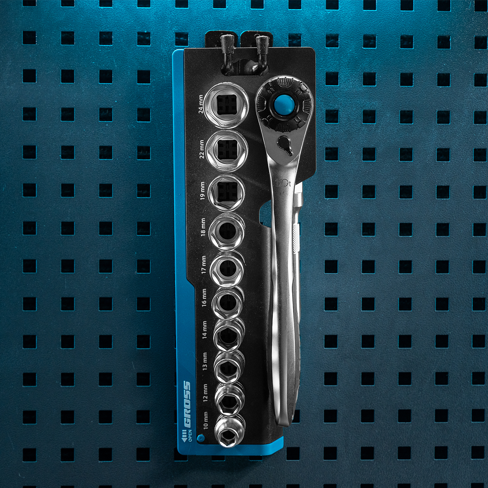 - Удобное размещение на стенде — набор инструментов комплектуется подвесной картой.