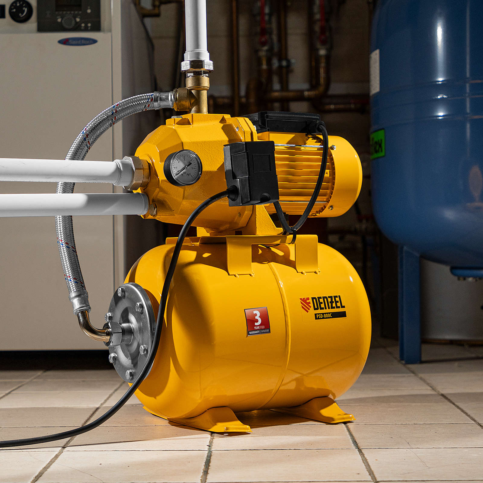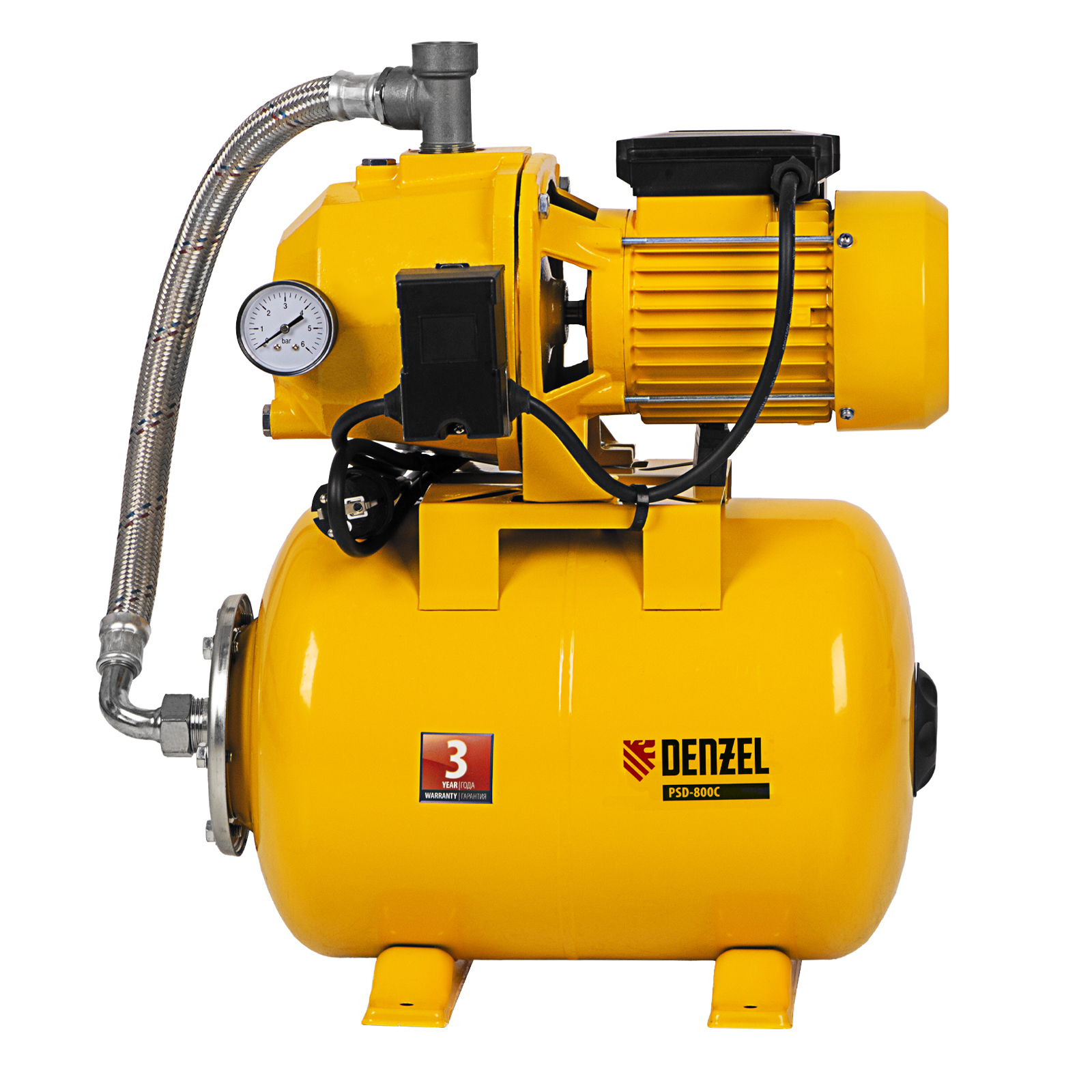 Насосная станция эжекторная PSD800C, 800 Вт, 2400 л/ч, ресивер 24 л, всасывание 20 м Denzel