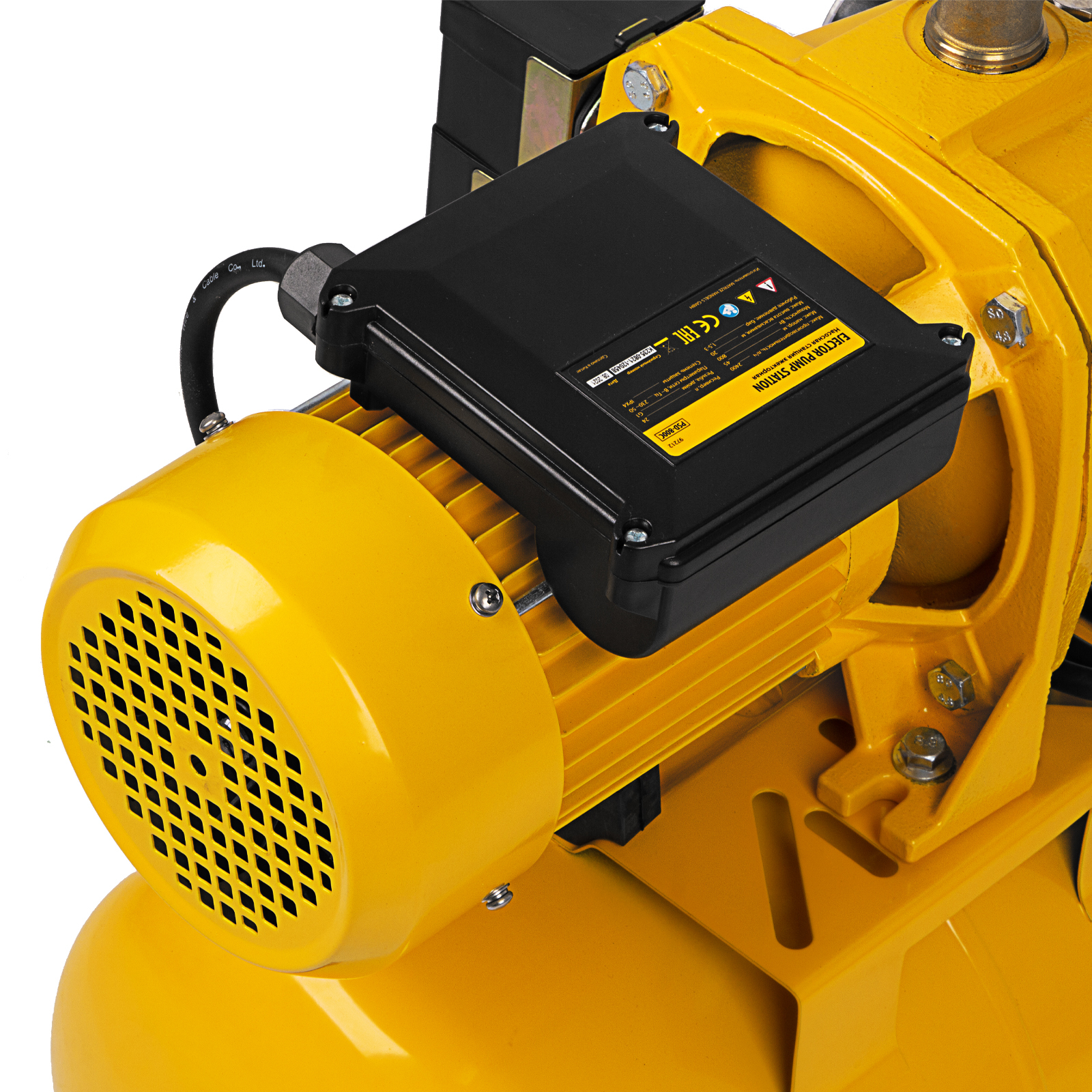 - Объемный ресивер на 24 л — система накопления снижает количество включений двигателя, что снижает энергопотребление и позволяет иметь запас воды на случай отключения электричества.