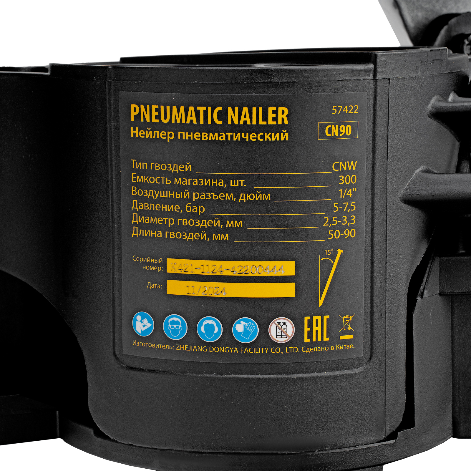 Нейлер пневматический CN90 для гвоздей CNW от 50 до 90 мм// Denzel