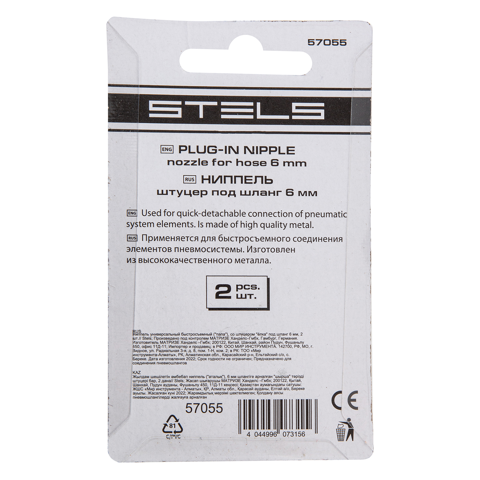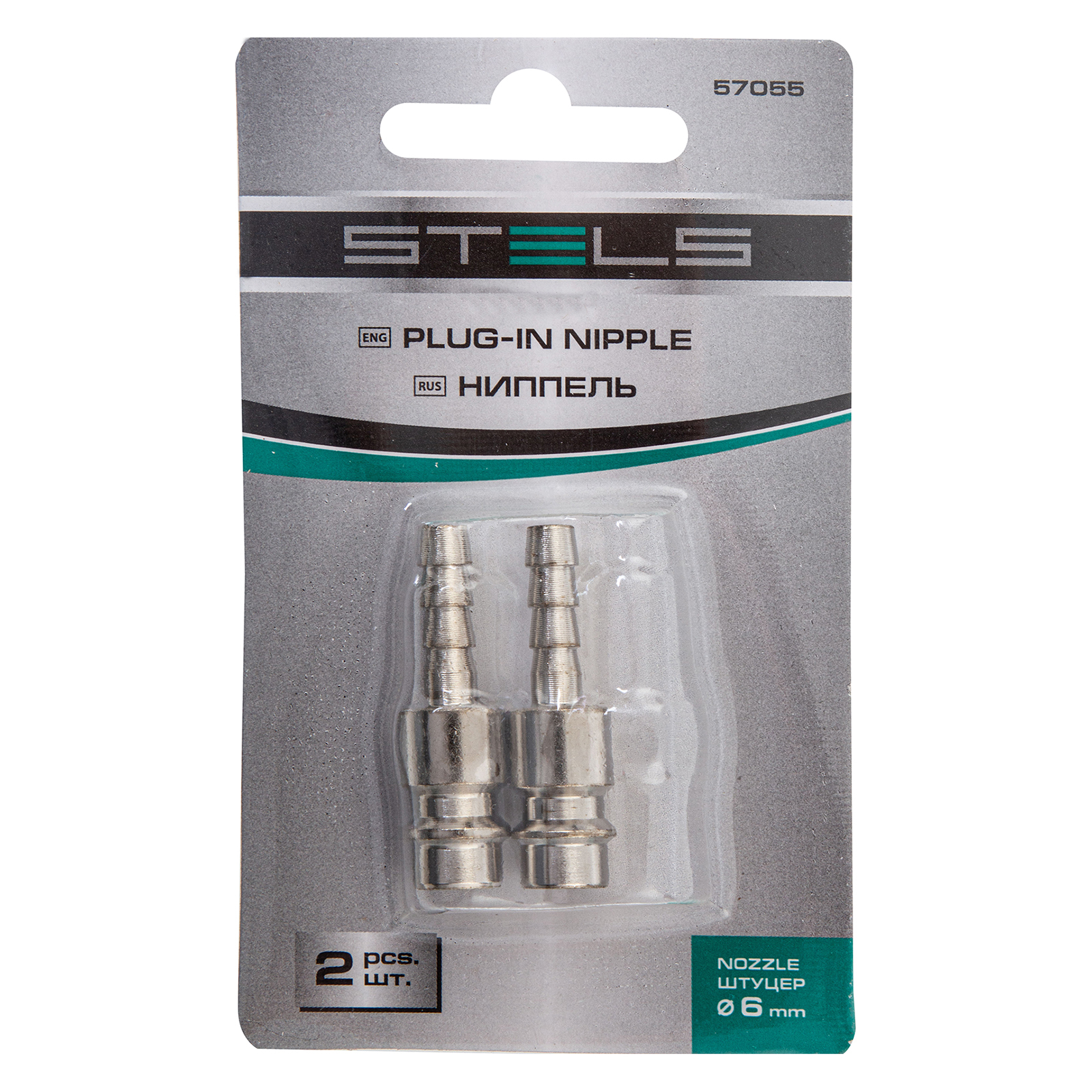 Ниппель универсальный быстросъемный ("папа") 1/4, со штуцером "елка" под шланг 6 мм, 2 шт, Stels
