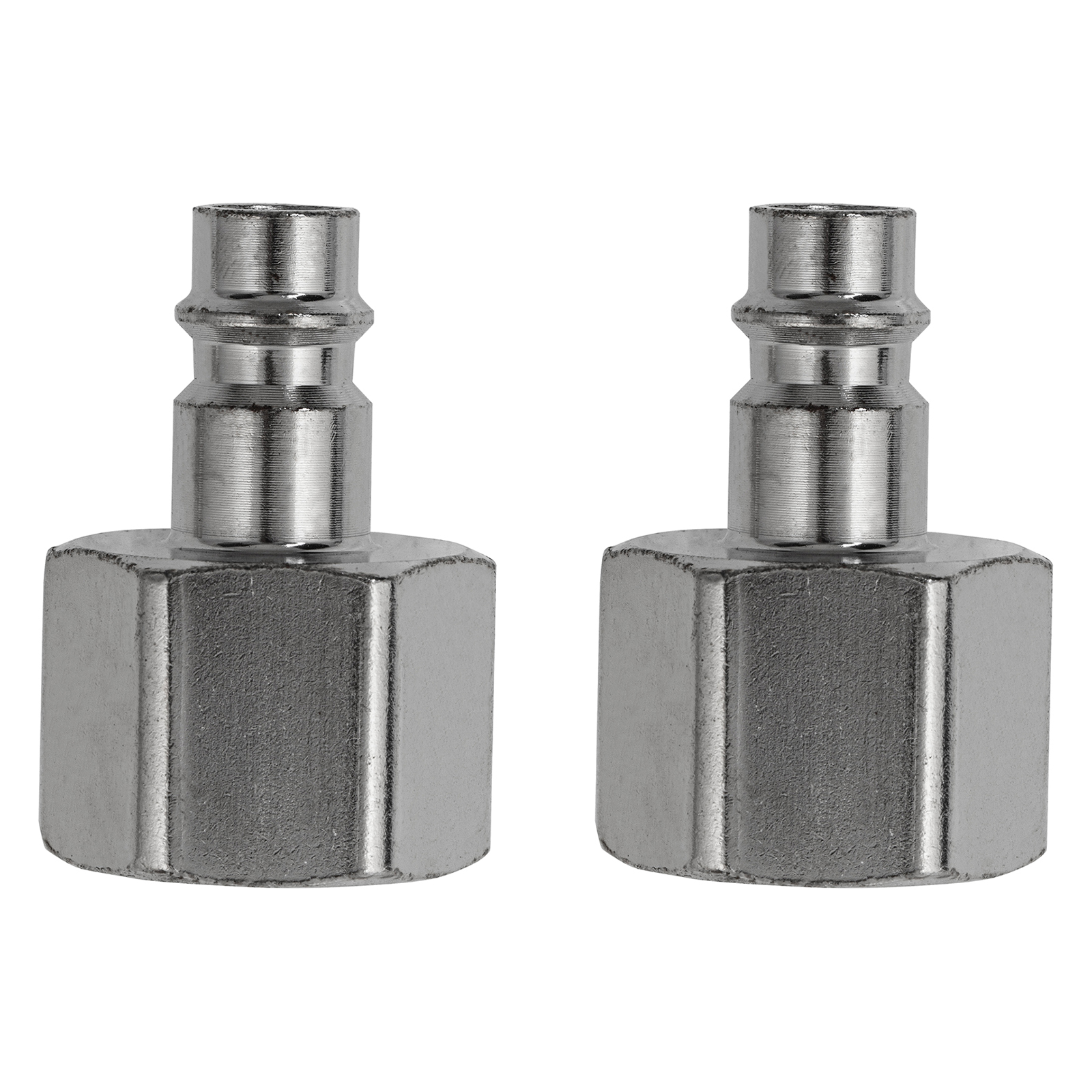 Универсальный быстросъемный ниппель Stels 57068, 2 шт. в упаковке, предназначен для перехода с внутренней резьбы 1/2 дюйма на рапид типа «папа» для монтажа пневматических линий. Используется для работы с пневмоинструментом, будет полезен на строительной площадке, в гараже и автосервисе.