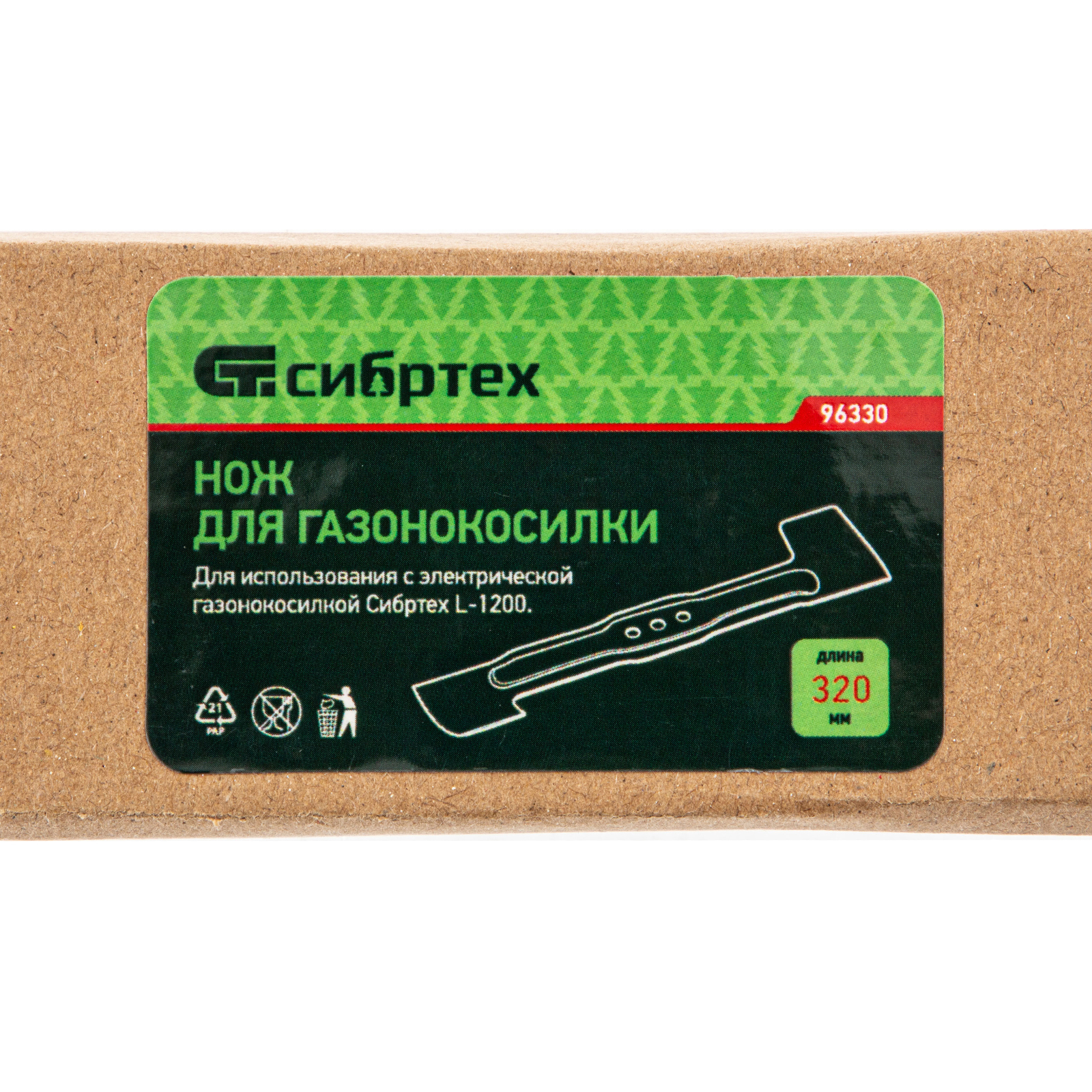 <p>Нож Сибртех 96330 длиной 32 см предназначен для установки на электрическую газонокосилку L1200 96607. Он используется для стрижки газонной травы на дачных участках, кортах, а также для ухода за придомовыми территориями.</p><h2>Преимущества</h2><ul><li>Прочность и долговечность — нож изготовлен из стали марки 40 твердостью 40-45 HRC, устойчивой к окислению и высоким температурам.</li><li>Защита от разрушения — порошковая краска предотвращает появление коррозии.</li><li>Готовность к работе — нож заточен на заводе, поэтому готов к использованию сразу после покупки.</li><li>Надежность — балансировка ножа также выполнена на заводе, это гарантирует отсутствие опасных вибраций во время работы.</li></ul>