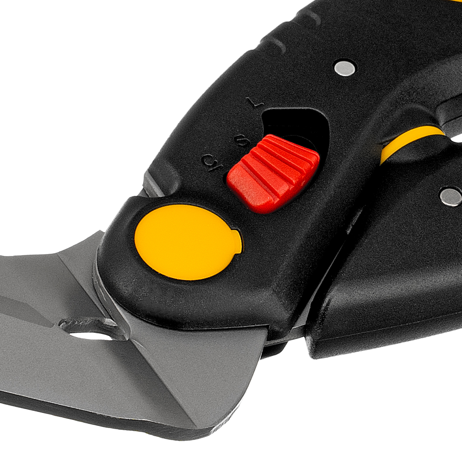 - Регулировка степени раскрытия лезвий — переключатель «большая-малая ладонь» позволяет настроить инструмент в соответствии с толщиной материала и размером руки пользователя.