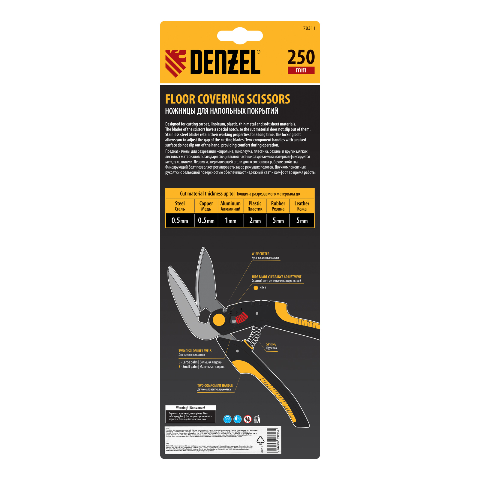 Ножницы для напольных покрытий, 250 мм, нержавеющая сталь, функция перерезания Denzel