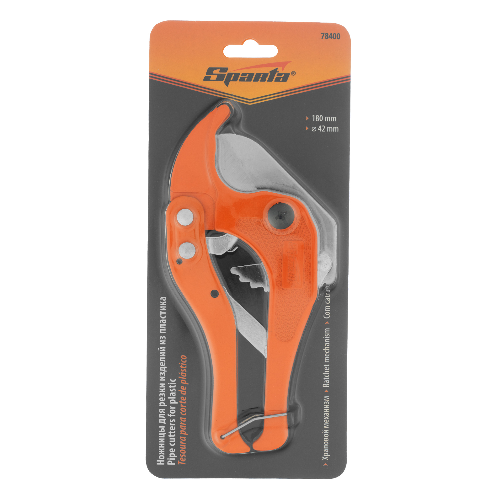 Ножницы Sparta 78400 длиной 180 мм предназначены для резки изделий из пластика диаметром до 42 мм. Храповой механизм увеличивает эффективность реза, экономя усилия мастера. Ножницы используются для ремонта и монтажа трубопроводных систем.