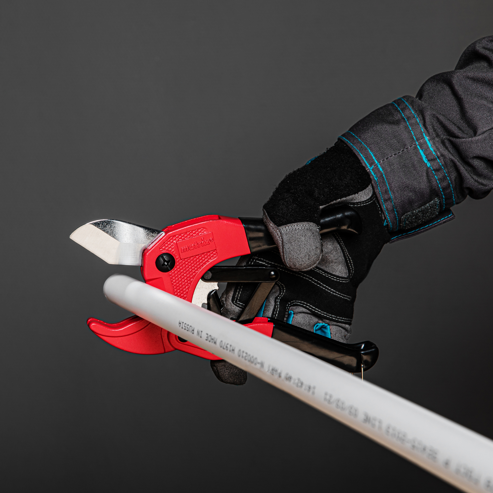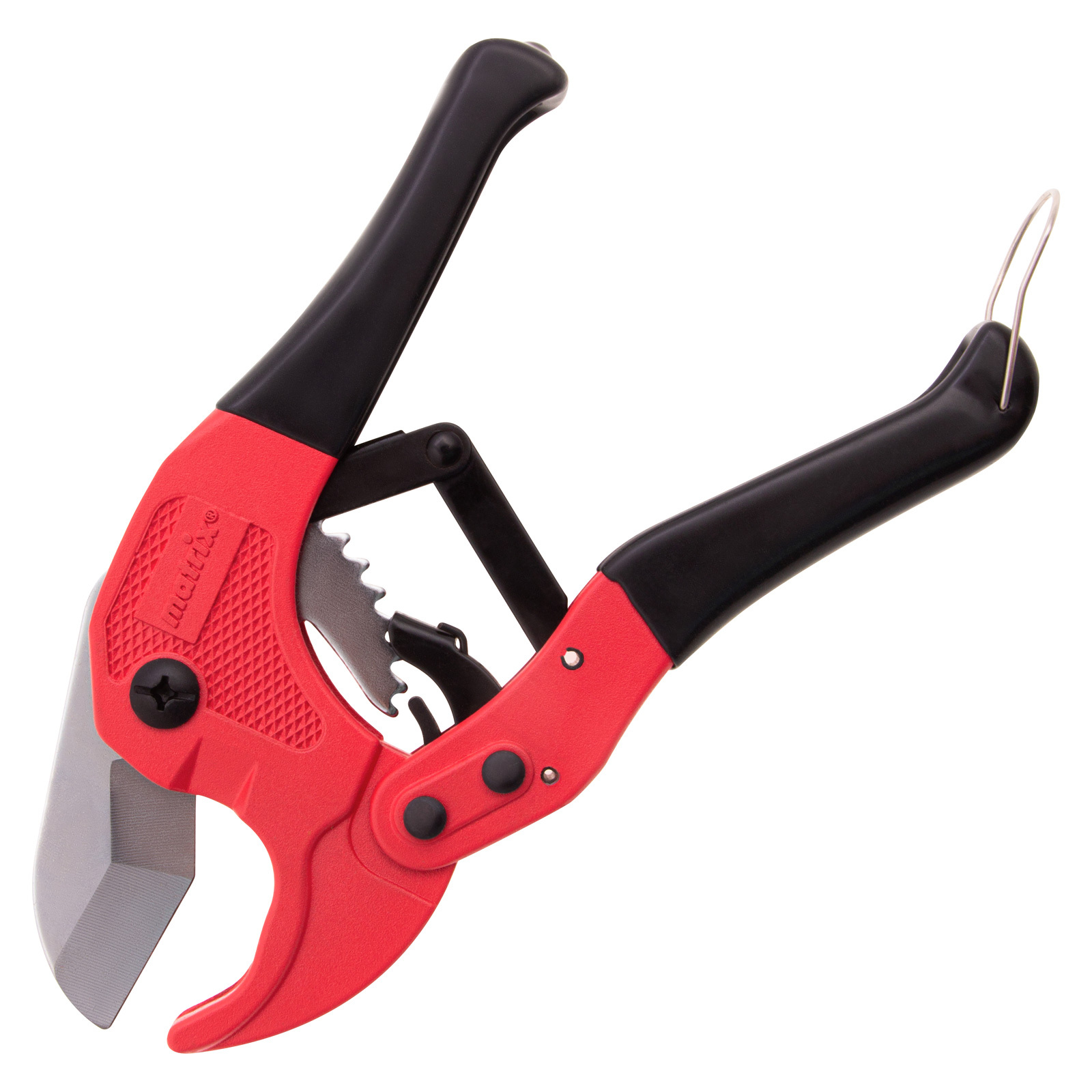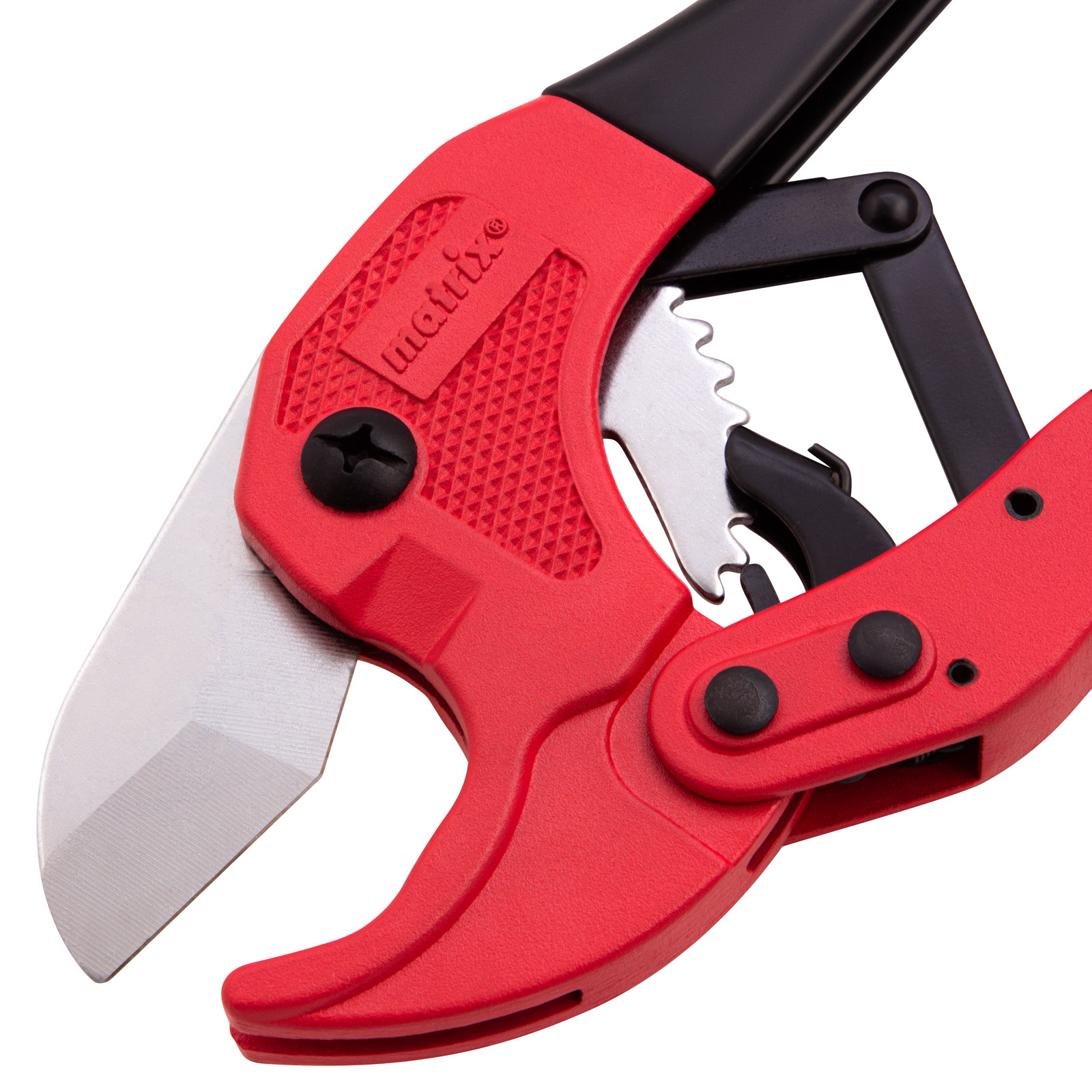 Ножницы Matrix 784105 предназначены для резки изделий из пластика диаметром или шириной до 42 мм — поливинилхлоридных труб, профилей, плинтусов, галтелей, а также резиновых шлангов и других предметов. Благодаря трапециевидному полотну с двумя режущими кромками инструмент позволяет эффективно решать поставленные задачи. Ножницы используются для выполнения сантехнических и отделочных работ.