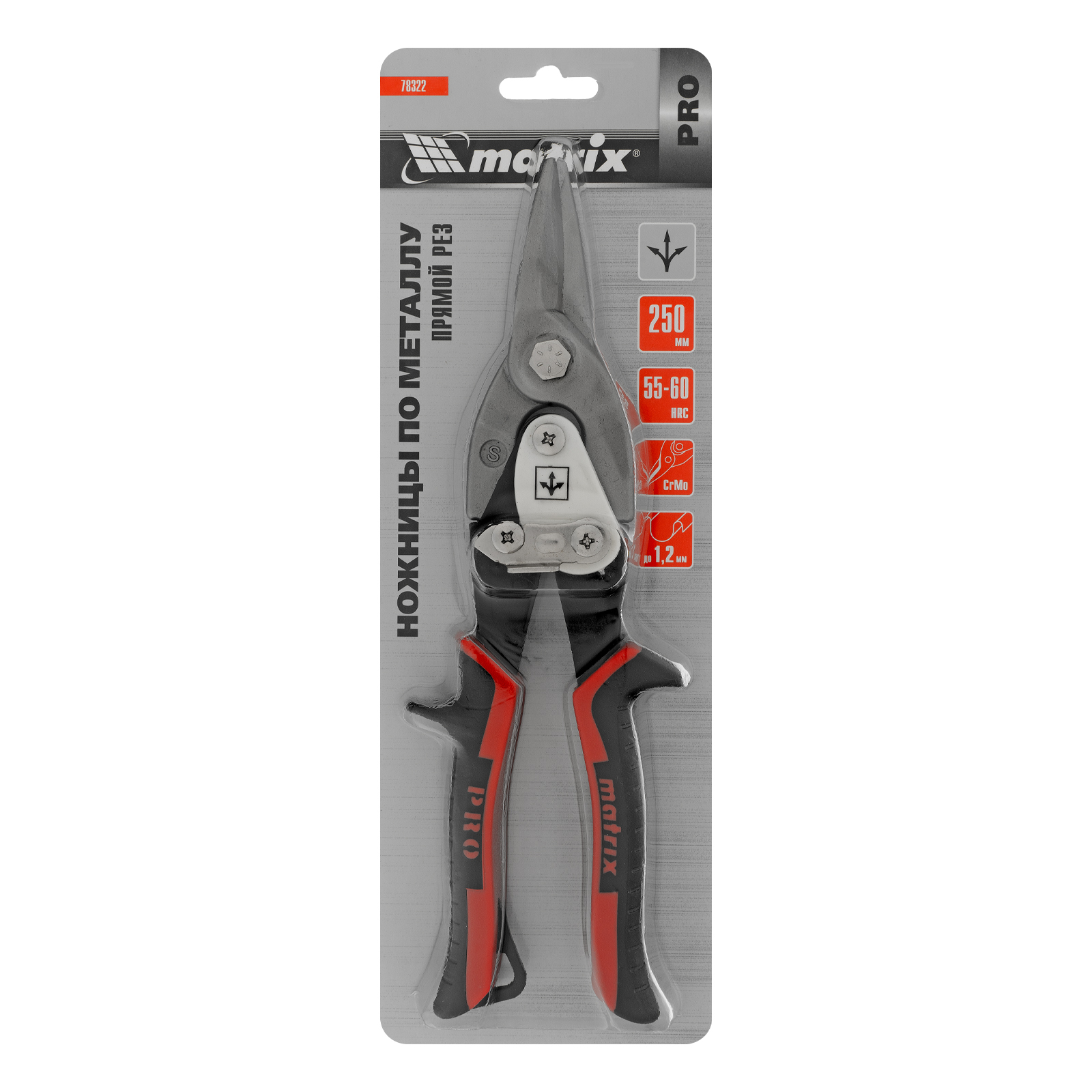 Ножницы по металлу, 250 мм, прямой рез, сталь CRMO, двухкомпонентные рукоятки, PRO Matrix