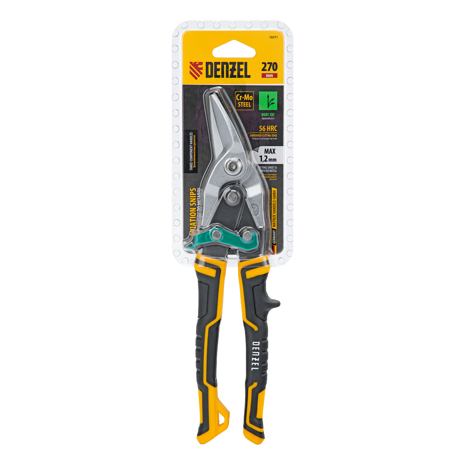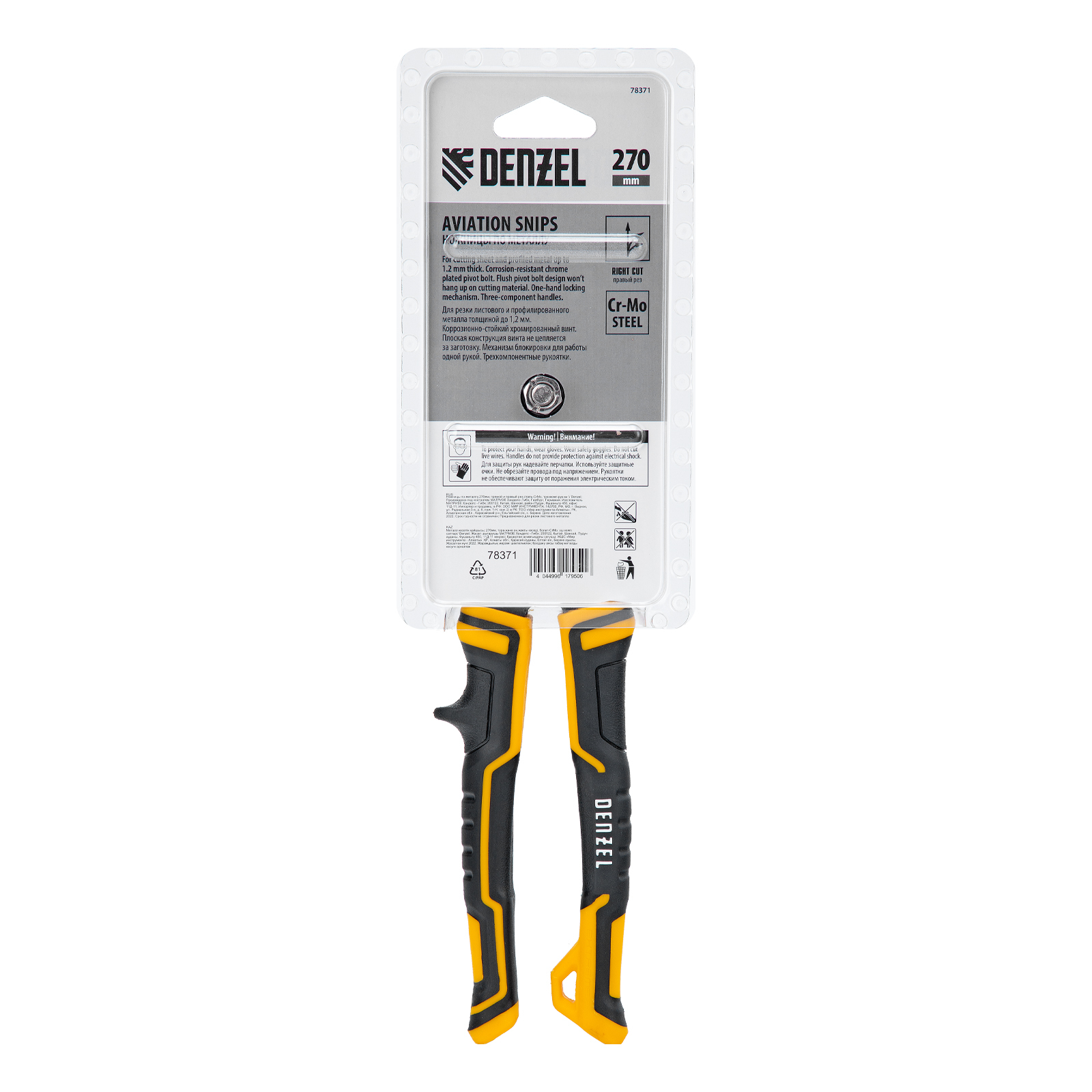 Ножницы по металлу, 270 мм, прямой и правый рез, сталь-СrMo, трехкомпонентные рукоятки Denzel