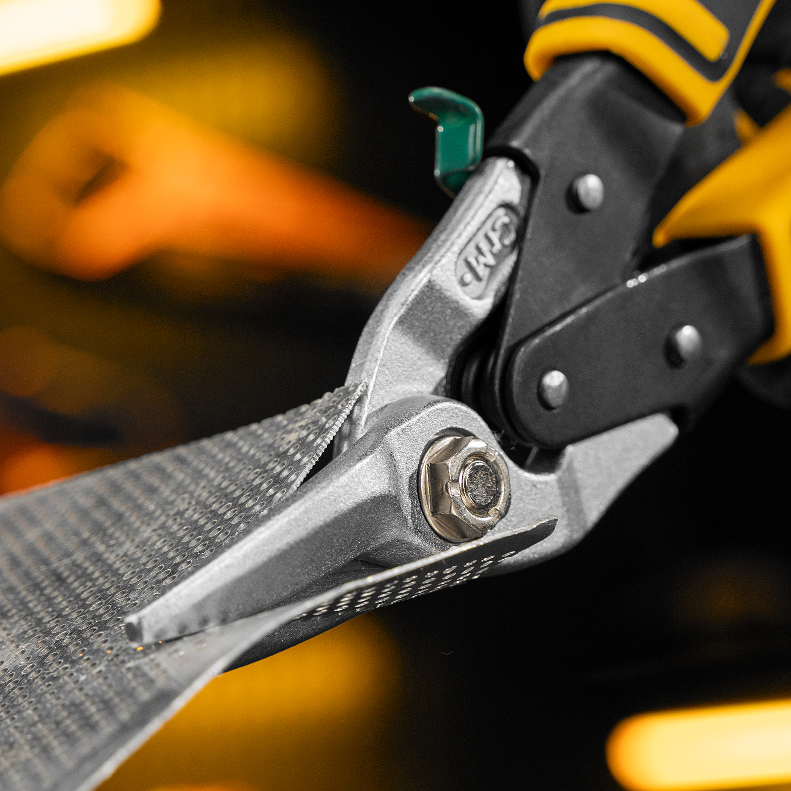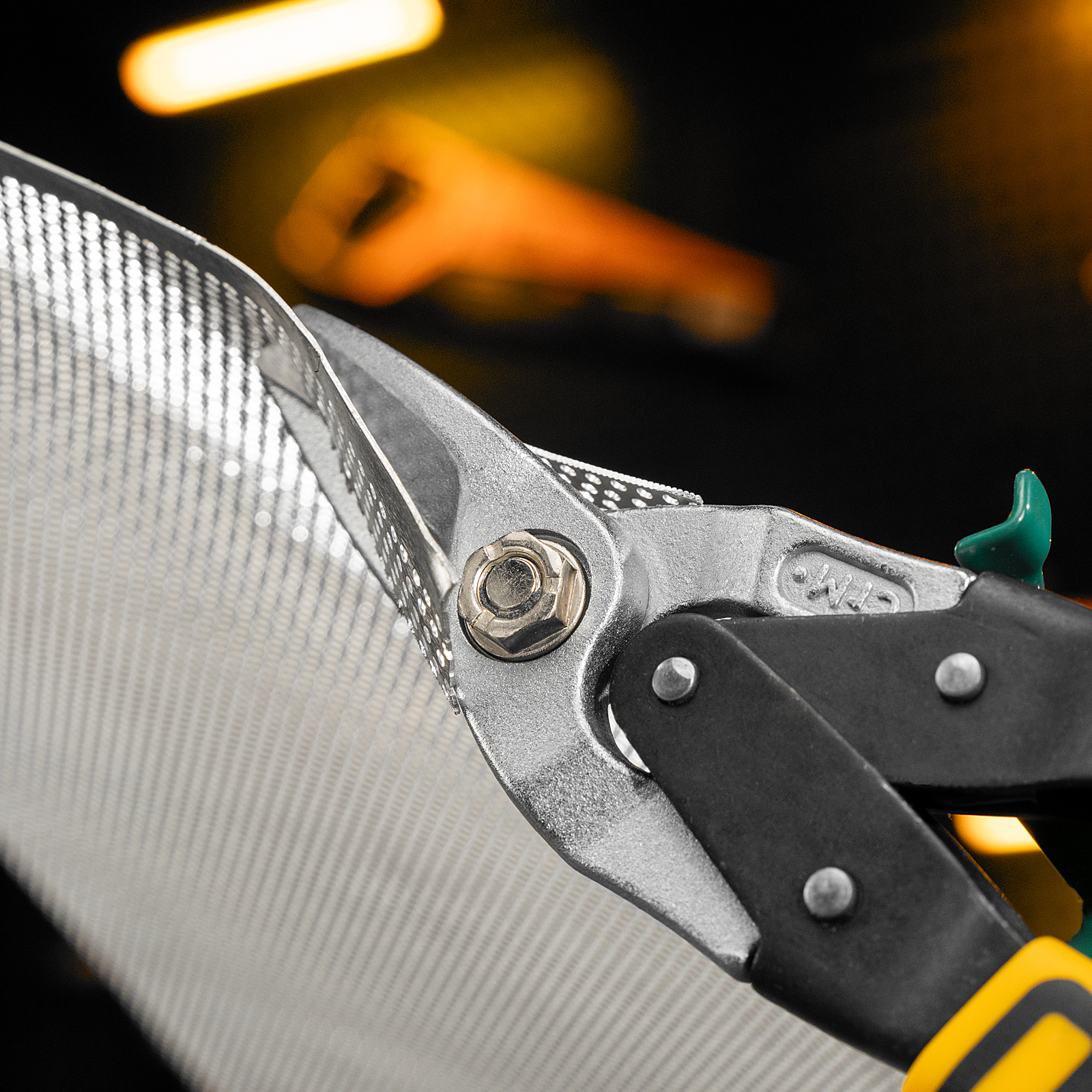 Ножницы по металлу Denzel 78371 общей длиной 270 мм, из стали-CrMo, с трехкомпонентными рукоятками, предназначены для прямого и правого реза листовых металлических заготовок и металлопрофиля толщиной до 1,2 мм. Инструмент с усиленной конструкцией осевого шарнира рассчитан на профессиональное использование. Ножницы используются для проведения строительных, кровельных и слесарных работ.