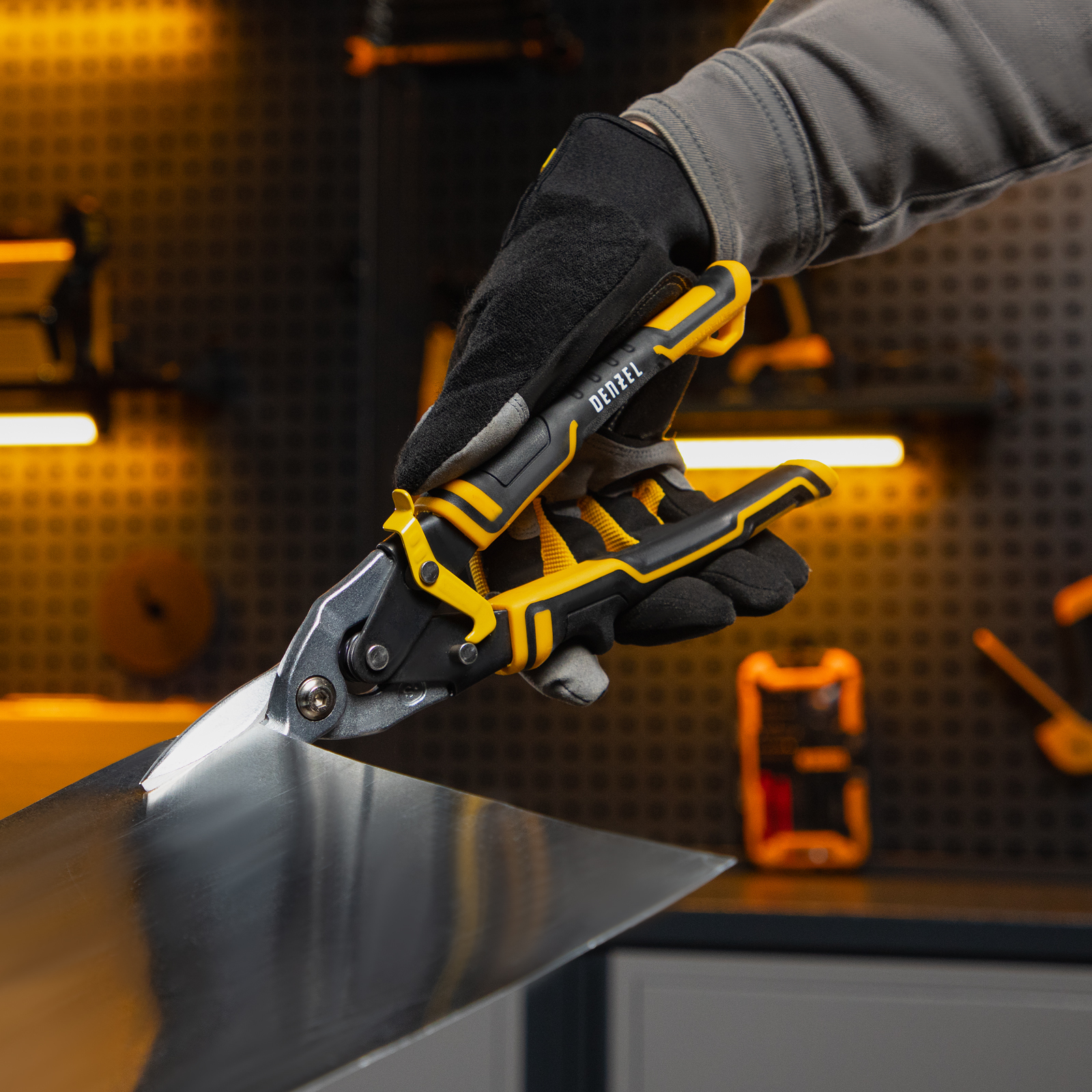 Ножницы по металлу, 270 мм, прямой рез, сталь-CrMo, трехкомпонентные рукоятки Denzel