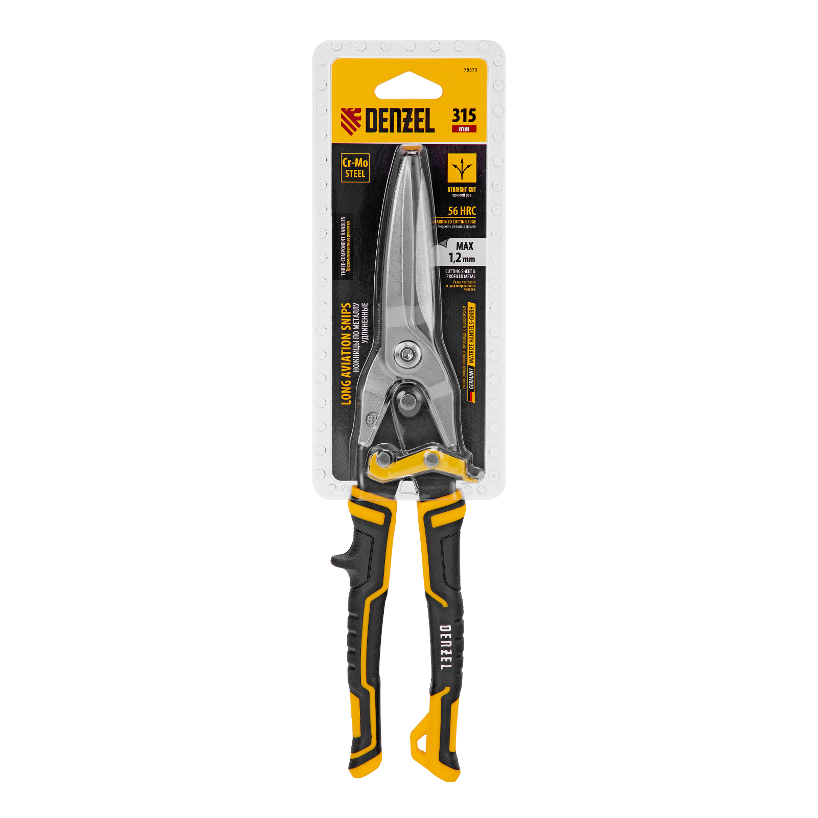 Ножницы по металлу, 315 мм, прямой проходной рез, сталь-CrMo, трехкомпонентные рукоятки Denzel