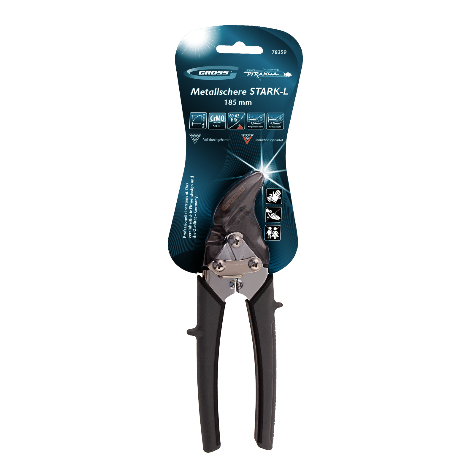 Ножницы по металлу "Piranha", 185 мм, прямой и левый рез, сталь СrM, двухкомпонентные рукоятки Gross