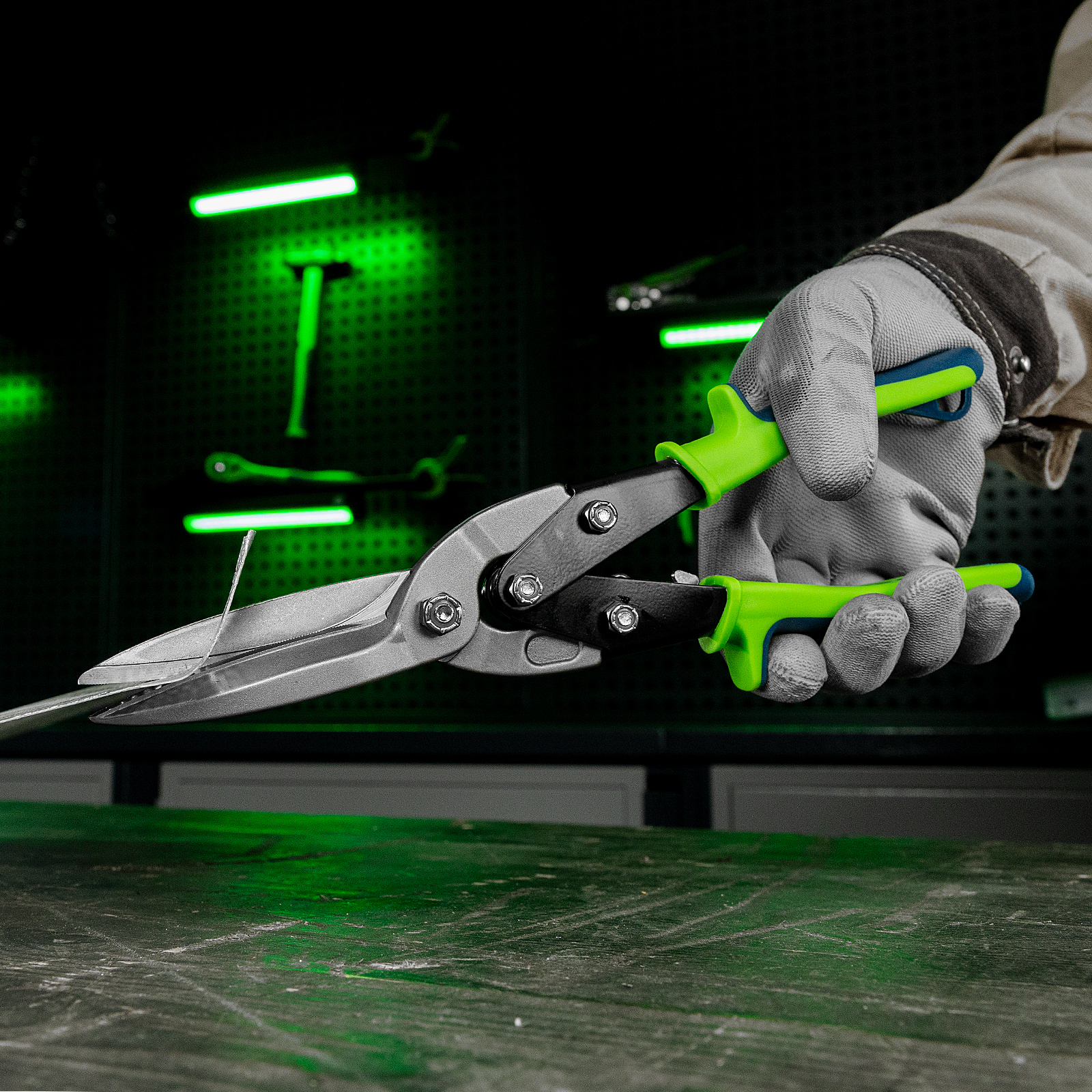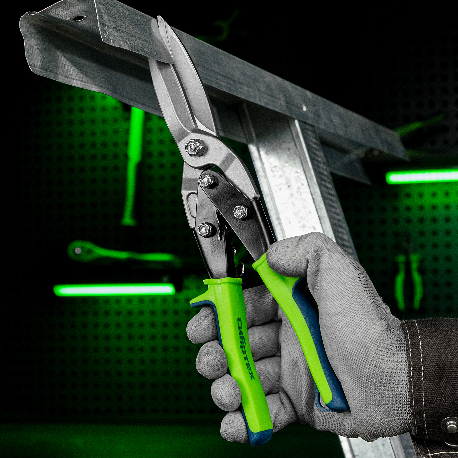 Ножницы по металлу, удлиненные, 285 мм, пряморежущие, двухкомпонентные обрезиненные рукоятки Сибртех