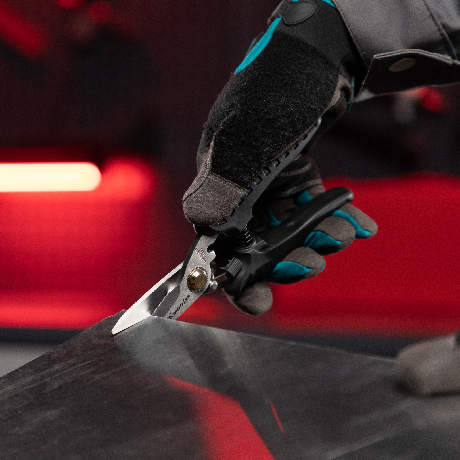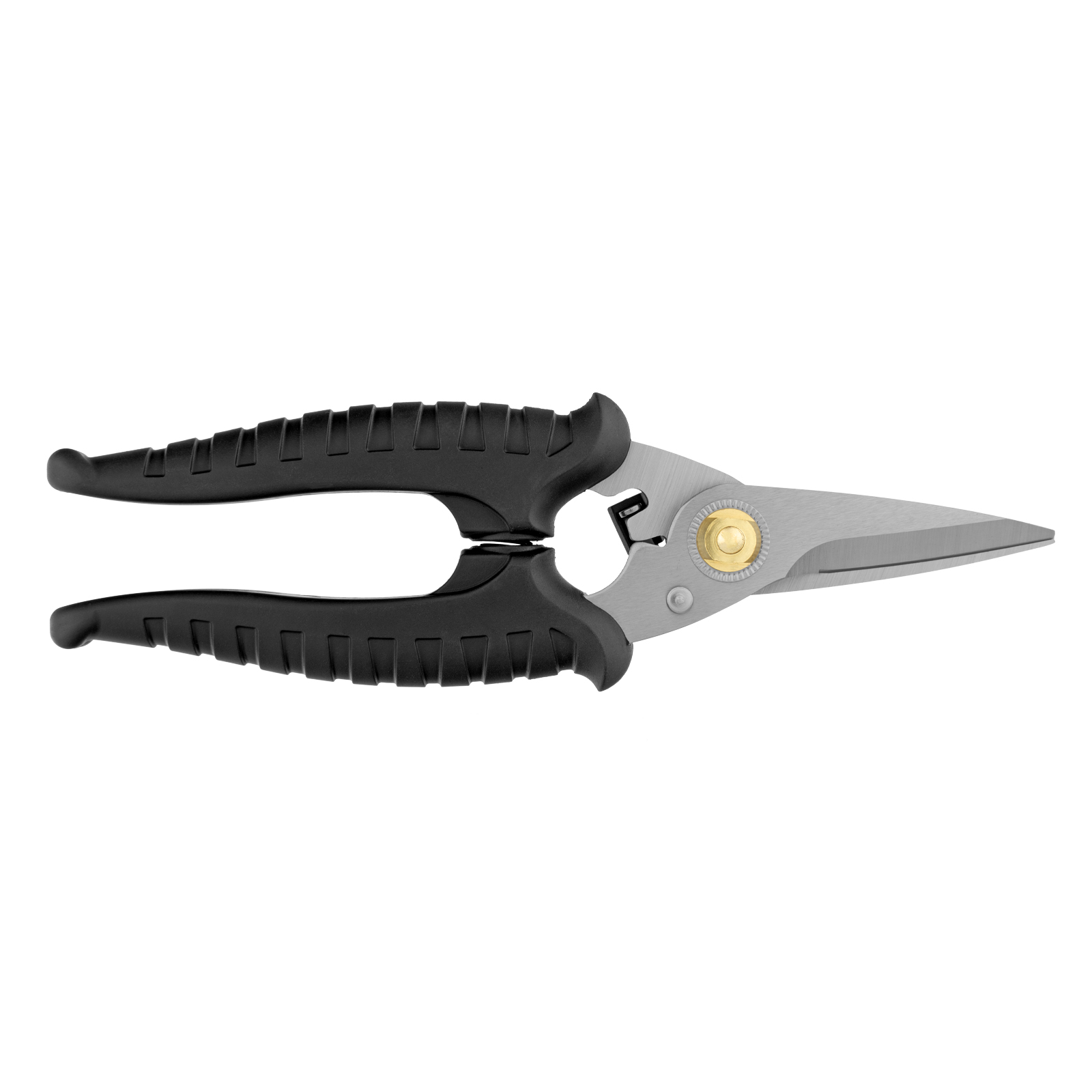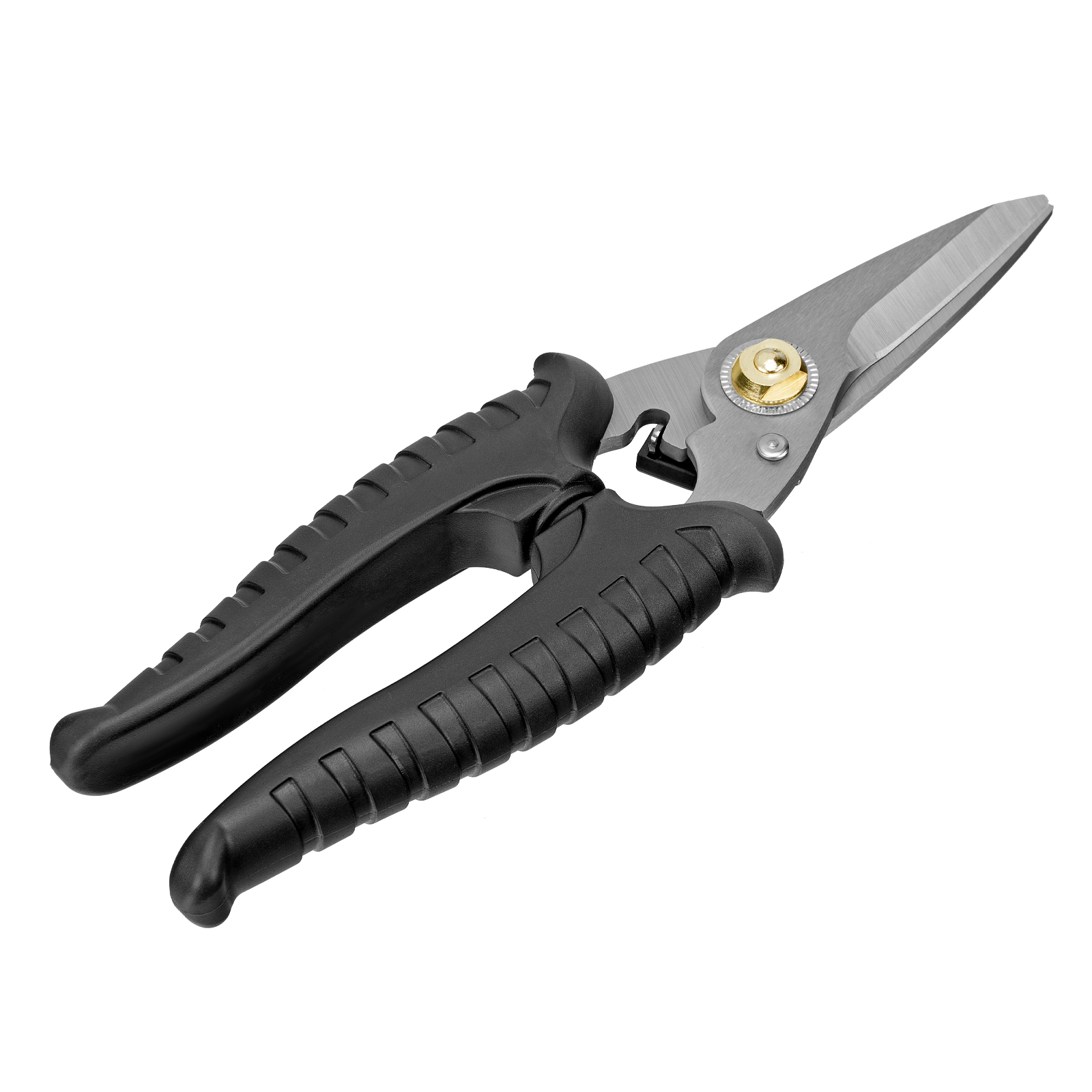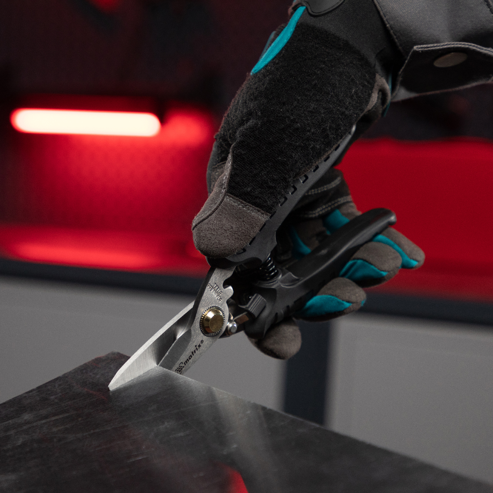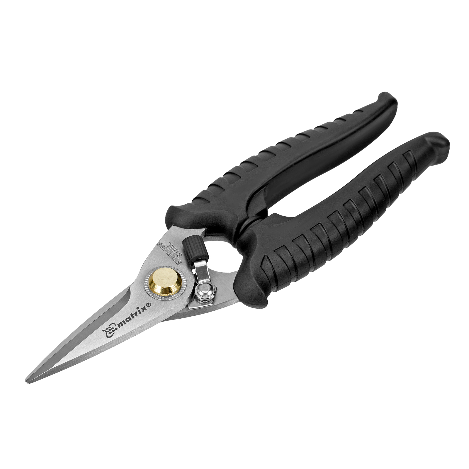 Универсальные ножницы Matrix 78307 длиной 183 мм — инструмент для разрезания тонкого металла и мягких материалов. Лезвия ножниц зазубрены, поэтому разрезаемый материал не выскальзывает из них. Инструмент подходит для выполнения разнообразных бытовых работ. На даче он поможет разрезать стальную сетку толщиной до 1 мм, во время мелкого ремонта или занятий творчеством — провода, кожу, резину, картон, бумажную лозу и другие материалы, в походе — срезать ветки или разделать рыбу.