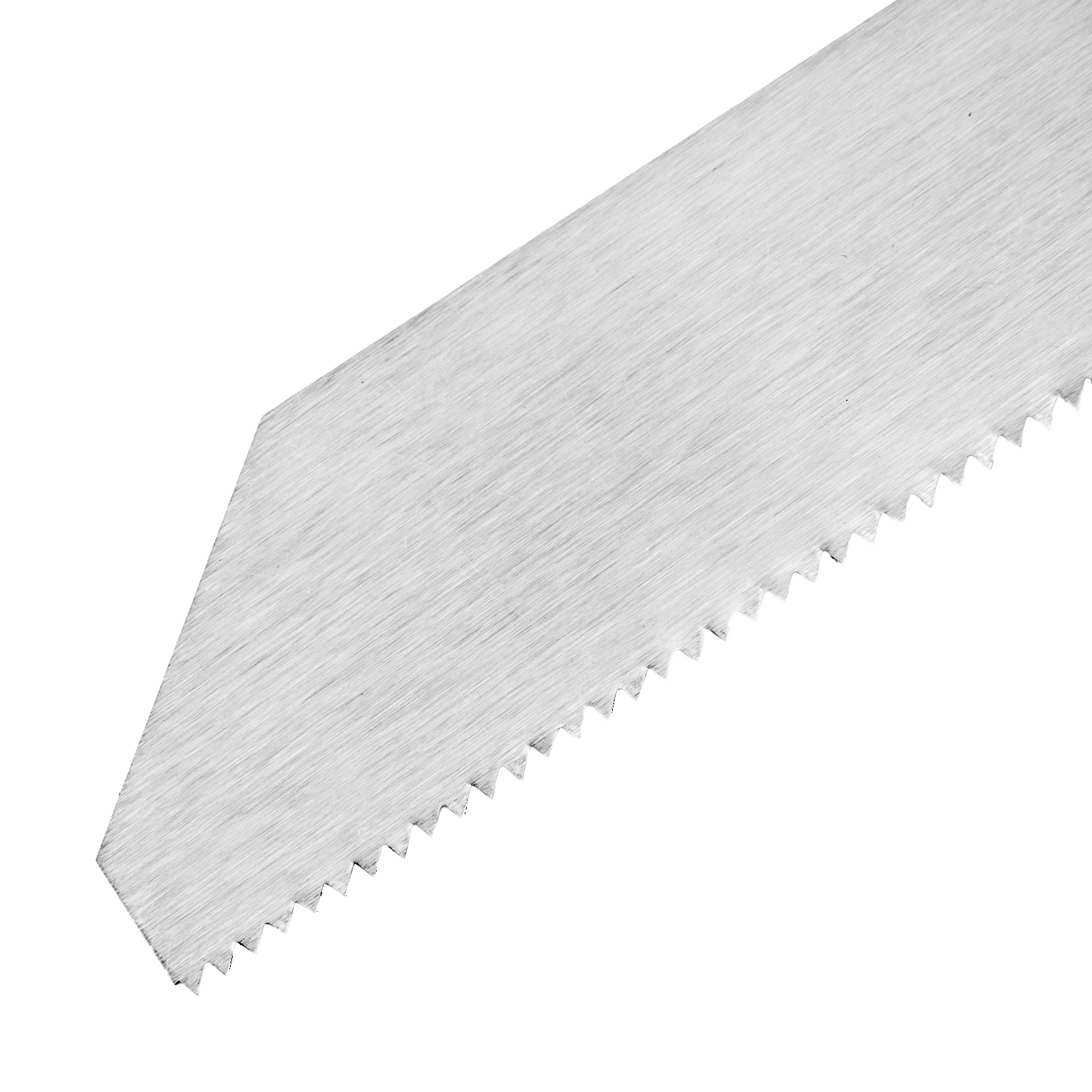 Ножовка по дереву Sparta 231255 с полотном длиной 350 мм и пластиковой рукояткой комплектуется 5 сменными полотнами и используется для выполнения столярных и плотницких работ, а также будет полезна во время ухода за садом. Ножовка заменяет несколько отдельных инструментов, поскольку в комплекте поставки присутствуют полотна разного назначения — универсальное, выкружное, обушковое для стусла, а также полотна для обрезки сучьев и тонких работ. Зубья с 2D-заточкой и шагом 7-8 TPI пилят древесину как вдоль волокон, так и поперек, и позволяют выполнять работы с высокой скоростью. В случае снижения производительности рабочие кромки можно затачивать.