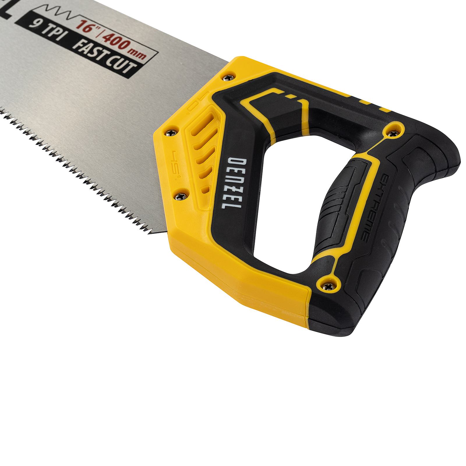 Ножовка по дереву, 400 мм, 9 TPI, зуб 3D, двухкомпонентная рукоятка Denzel