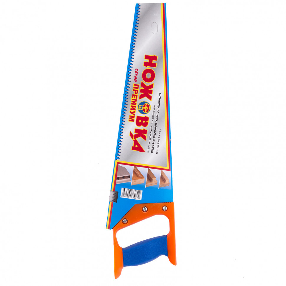 <p>Ножовка по дереву 23162 с длиной полотна 400 мм и пластиковой рукояткой — режущий инструмент, шаг зубьев которого составляет 5 мм. Применяется для продольно-поперечного пиления древесины. Пилит в направлении от себя и на себя. Крупные зубья обеспечивают быстрый рез. Если режущая кромка затупится, ее можно заточить. Пила будет полезна столяру и плотнику, пригодится также дома или на даче.</p><h2>Преимущества</h2><ul><li>Прочность и деформационная стойкость — полотно изготовлено из холоднокатаной пружинной стали 65Г.</li><li>Высокий ресурс — закаленные зубья долго сохраняют режущую способность, лаковое покрытие защищает полотно от образования коррозии.</li><li>Надежная конструкция — зафиксированное 3 винтами полотно не выпадает из рукоятки.</li><li>Эргономичность — пластиковая рукоятка удобно ложится в руку.</li></ul>