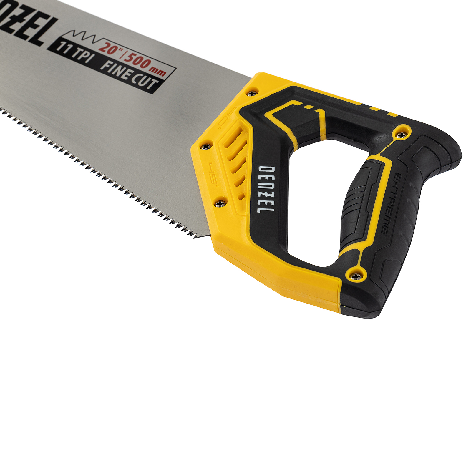 Ножовка по дереву, 500 мм, 11 TPI, зуб 3D, двухкомпонентная рукоятка Denzel