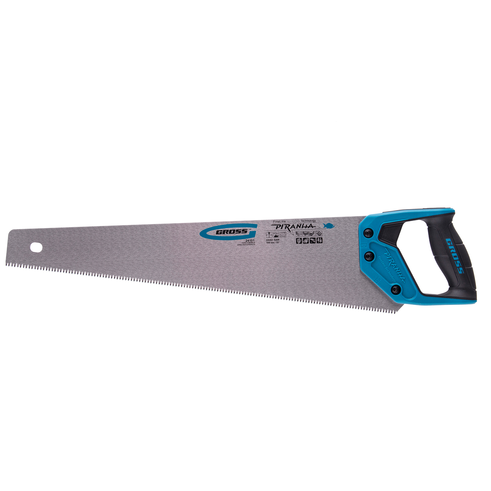 Ножовка по дереву "Piranha", 500 мм, 7-8 TPI, зуб-3D, каленый зуб, двухкомпонентная рукоятка Gross