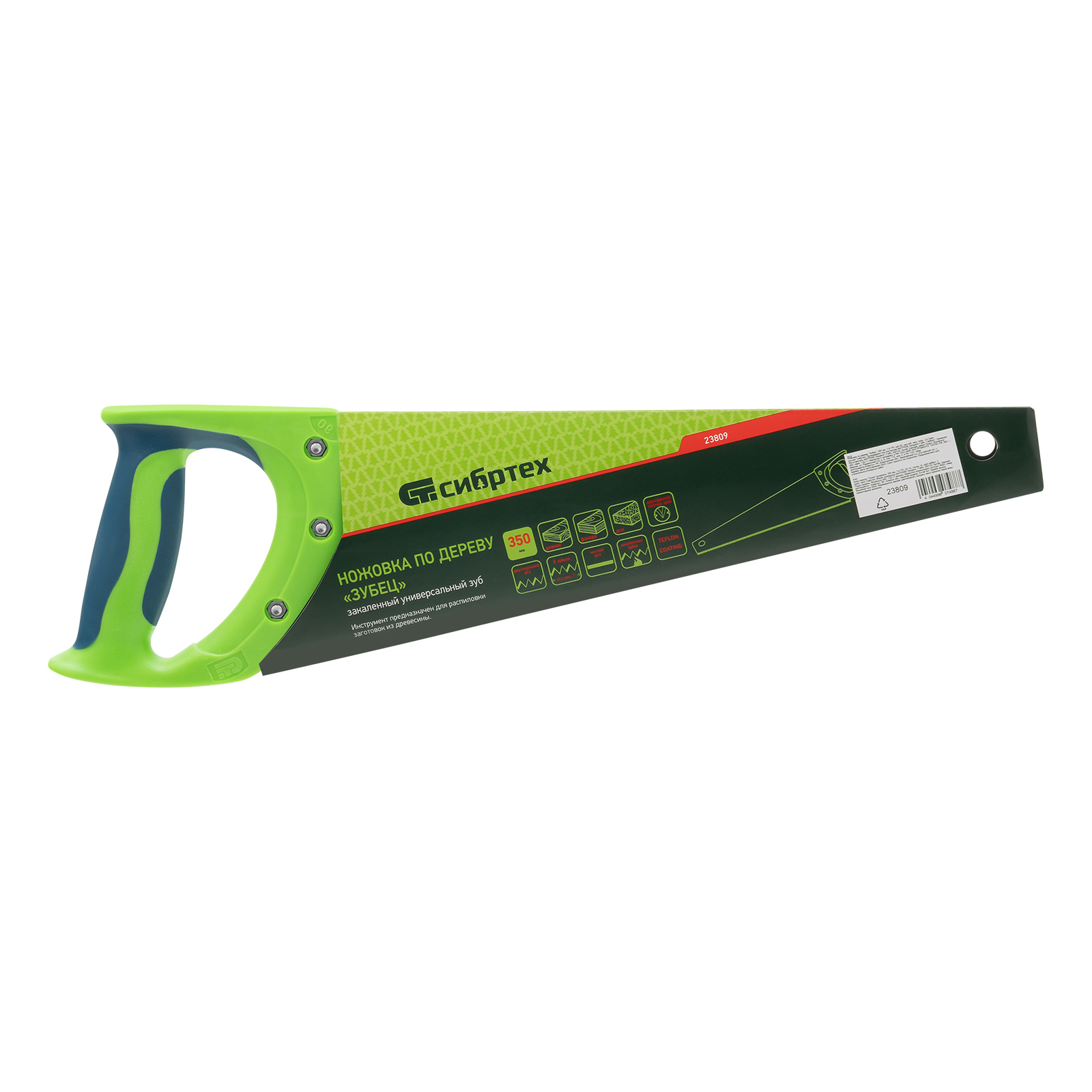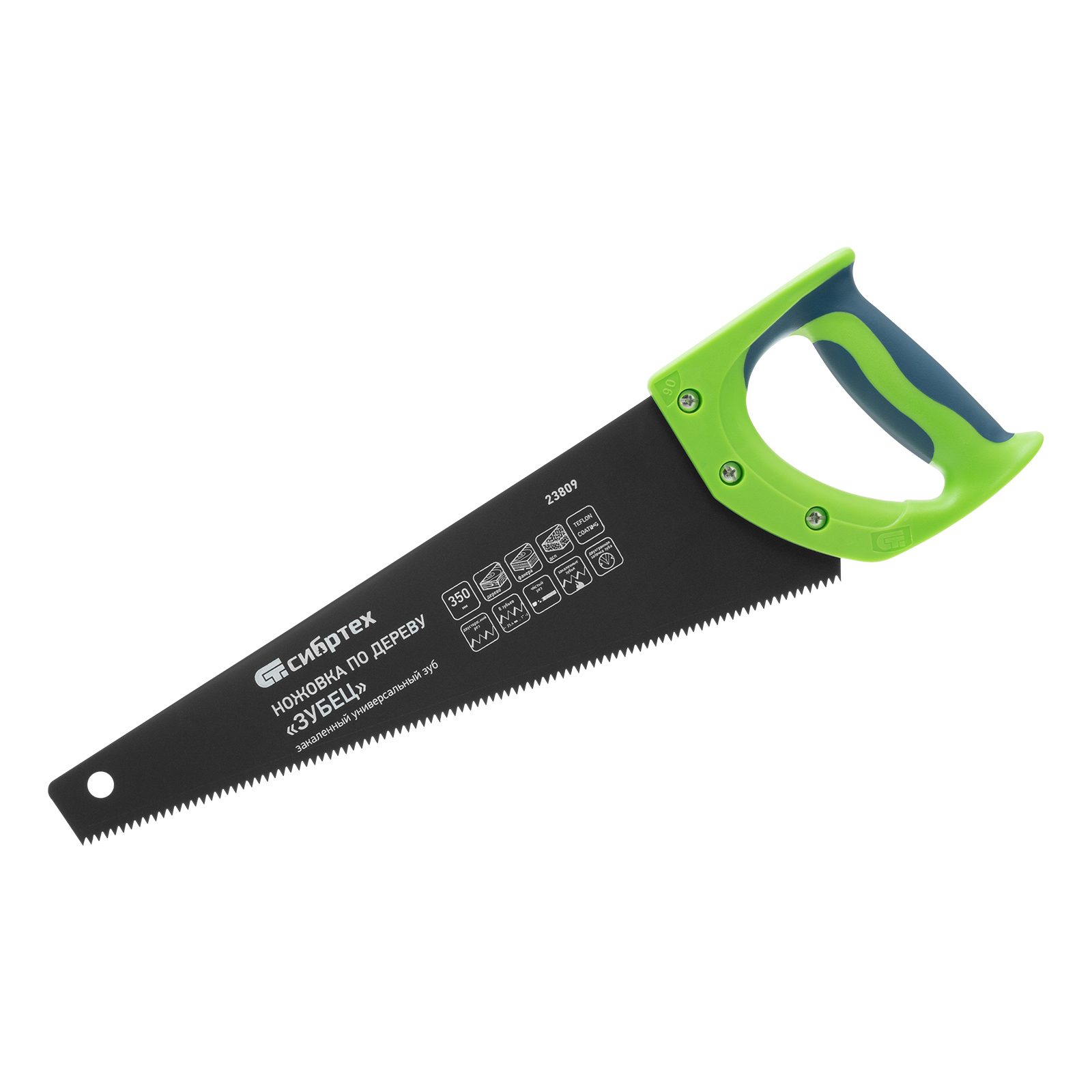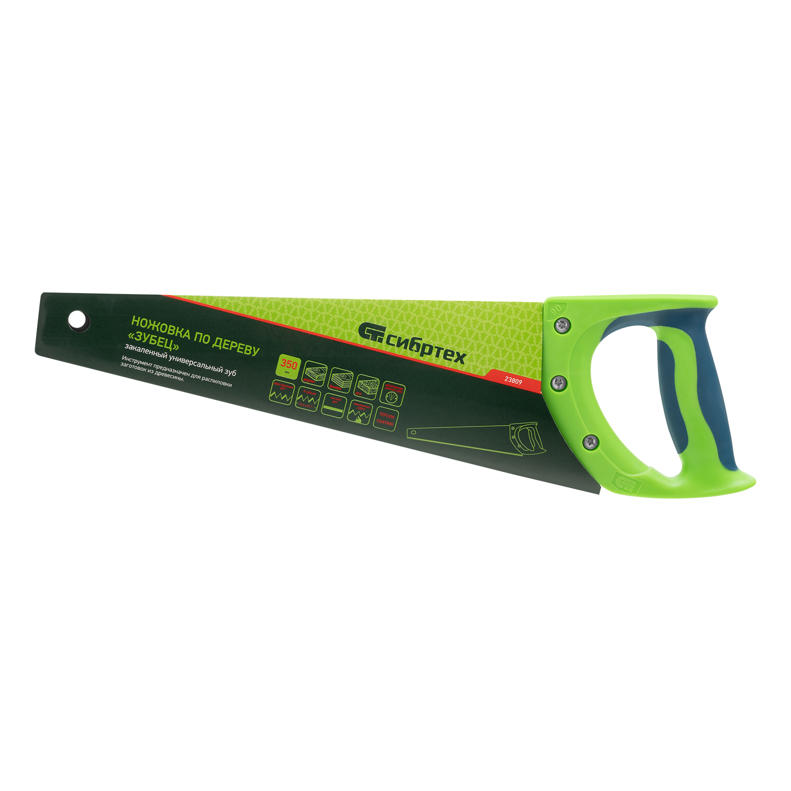 Ножовка по дереву "Зубец", 350 мм, 7-8 TPI, каленый зуб 2D, защитное покрытие, двухкомпонентная рукоятка Сибртех