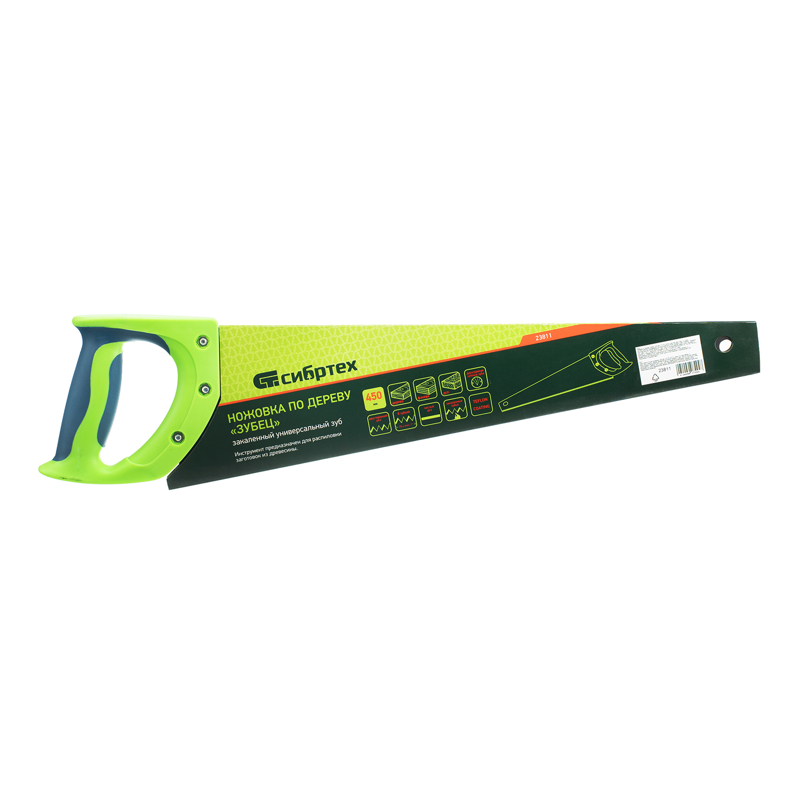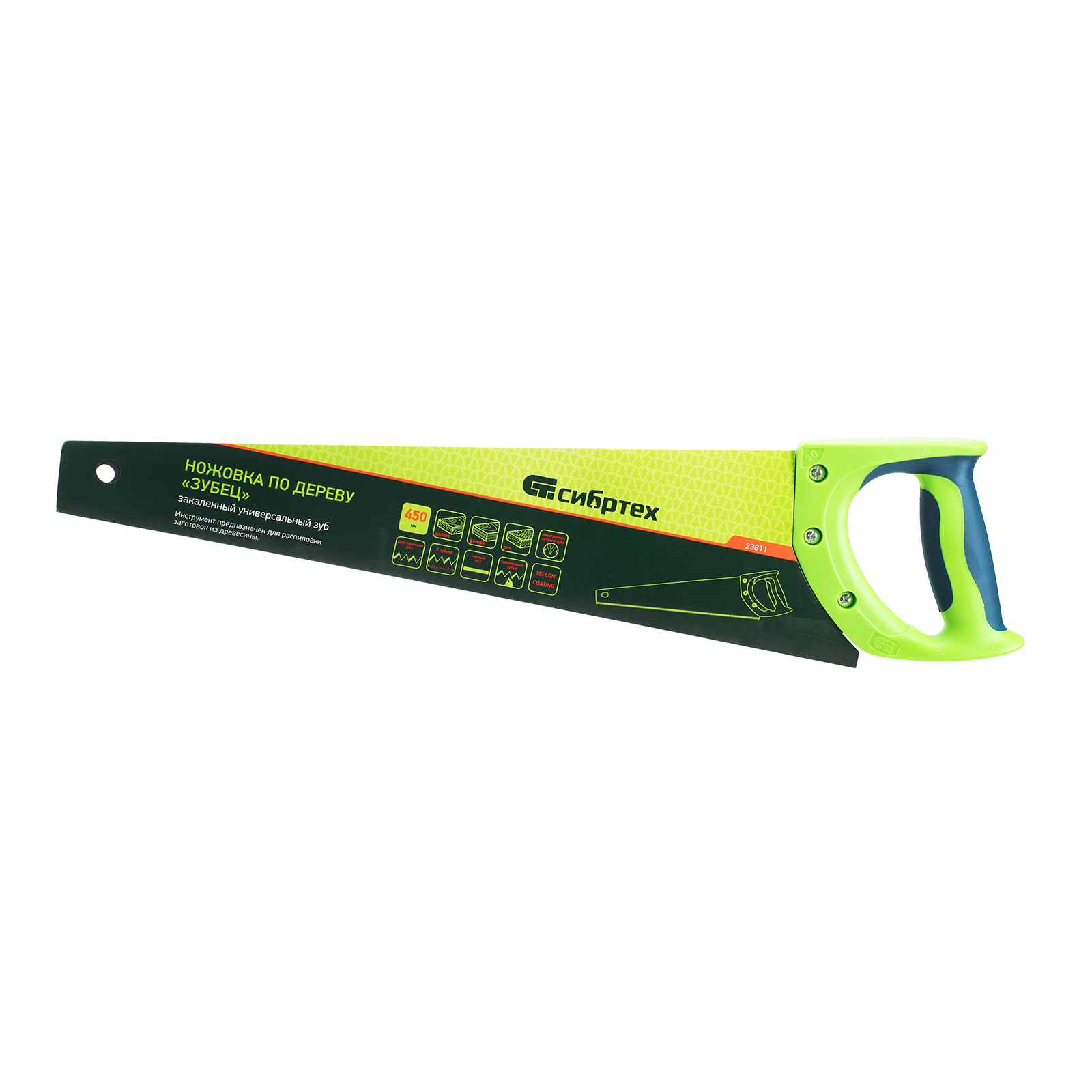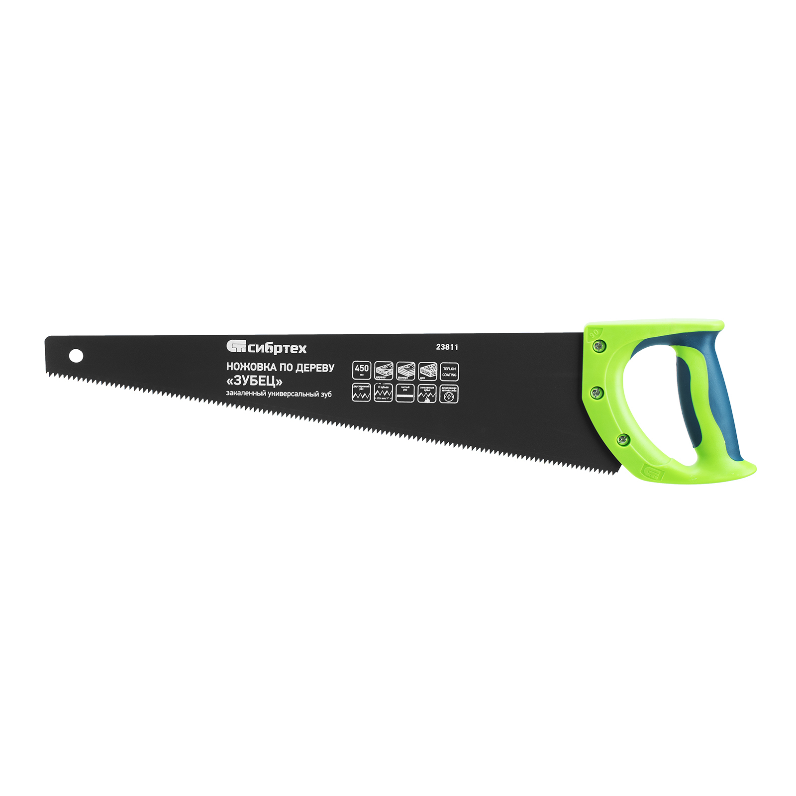 Ножовка по дереву "Зубец", 450 мм, 7-8 TPI, каленый зуб 2D, защитное покрытие, двухкомпонентная рукоятка Сибртех