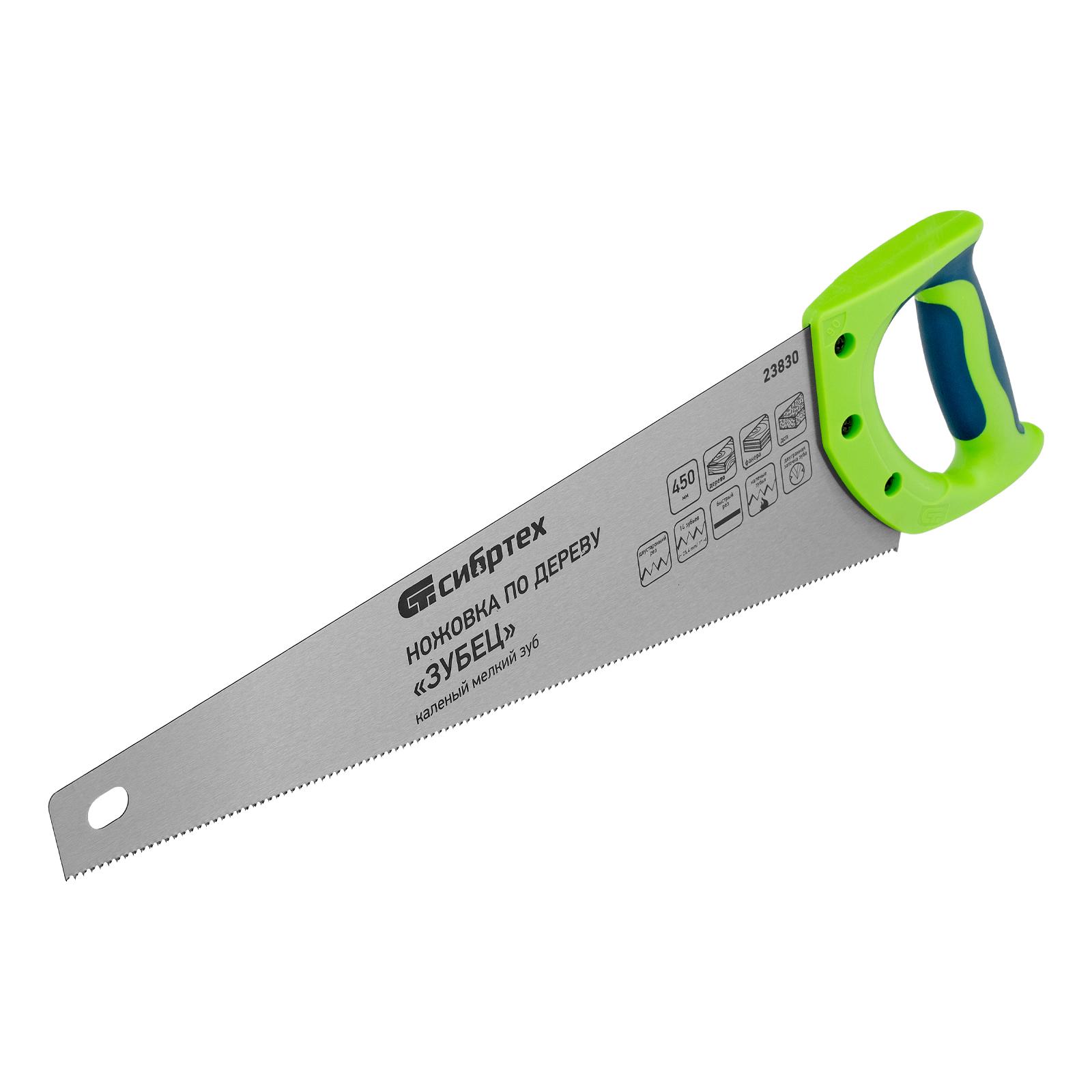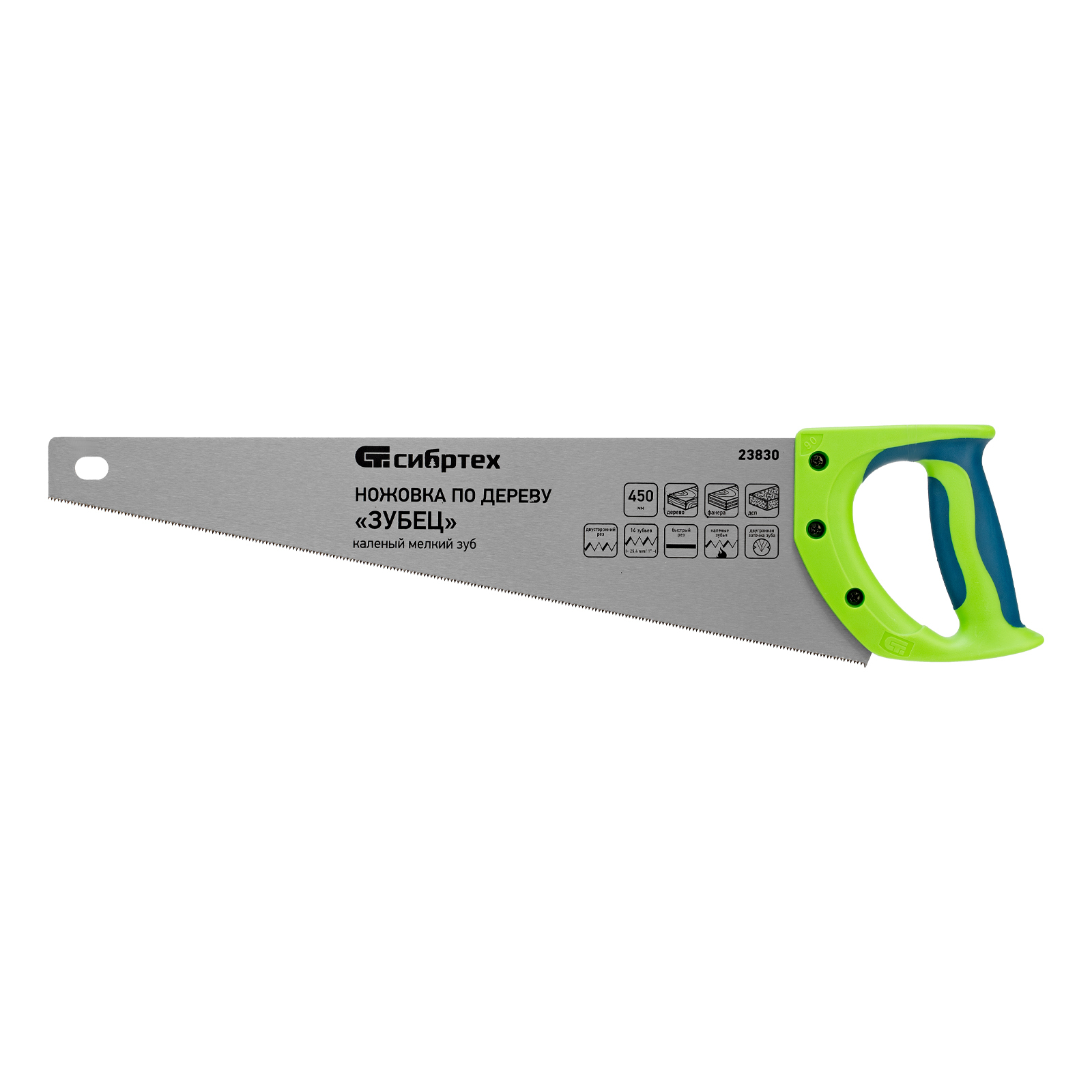 Ножовка по дереву"Зубец" для точных пильных работ, 450 мм, каленый зуб 2D, 14 TPI, двухкомпонентная рукоятка Сибртех