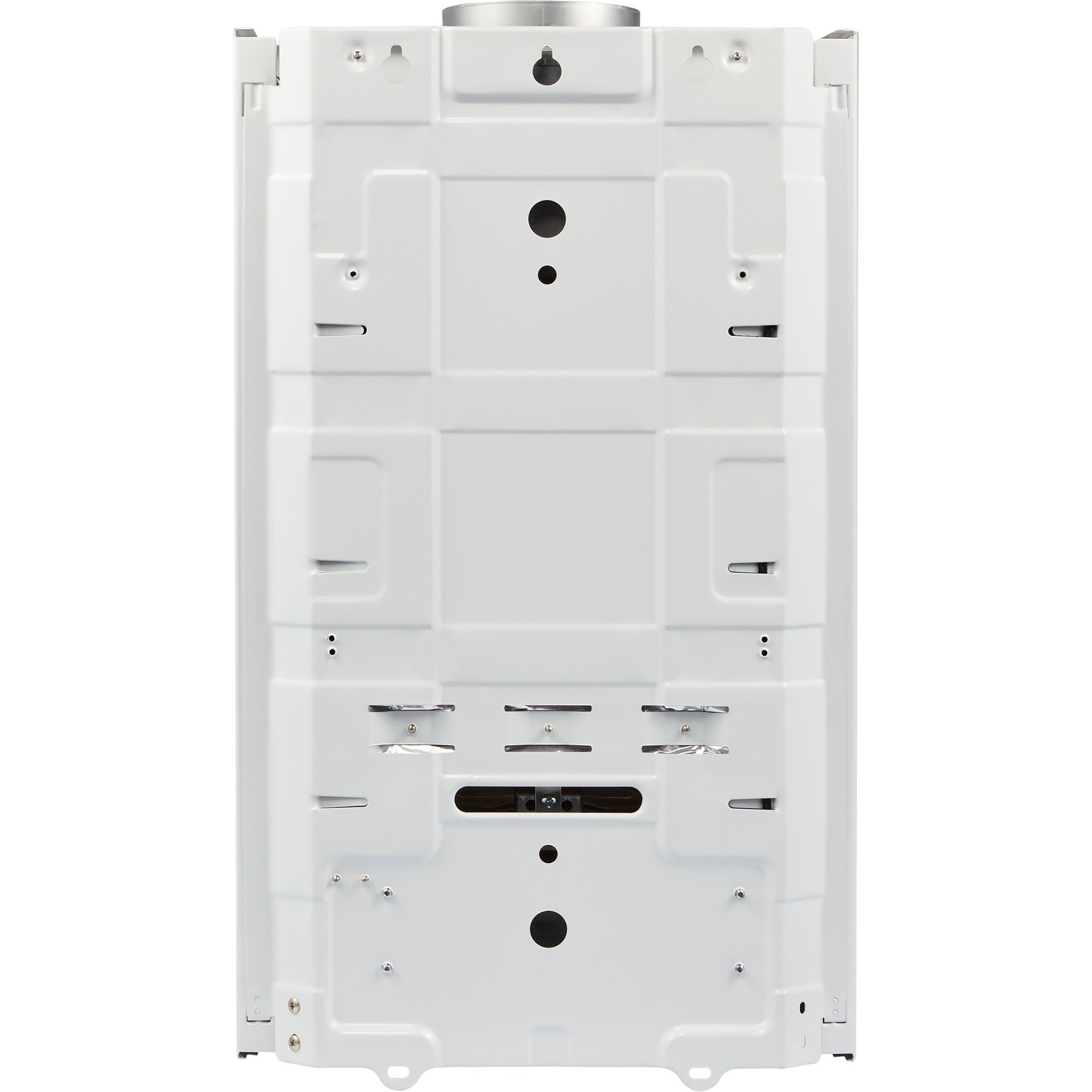 Четыре уровня контроля безопасности: датчик тяги, защитный термостат, гидравлический предохранительный клапан и контроль ионизации пламени – обеспечивают надежную и безопасную работу газовой колонки. Для защиты лицевой панели от перегрева и прогорания прибор дополнительно оснащен металлической пластиной.