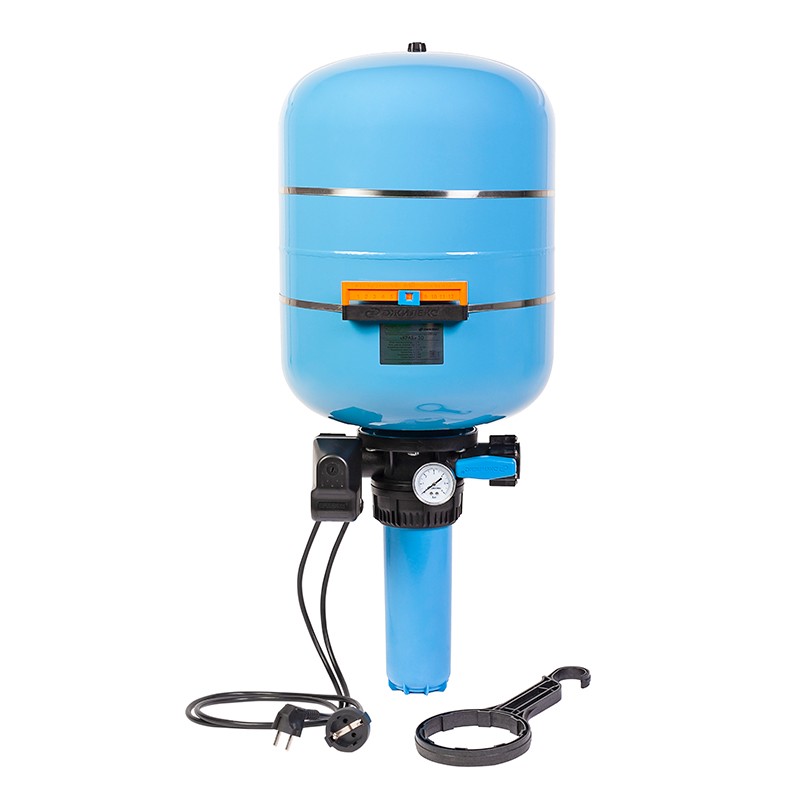 Предназначен для поддержания заданного давления в системах водоснабжения с предварительной фильтрацией воды. Легкий и удобный монтаж. Не требует дополнительной настройки. Автоматическое управление включением/выключением электронасоса. Полный комплект для автоматизации системы водоснабжения. Предварительная фильтрация воды. Календарь смены картриджей фильтра. Вся система устойчива к коррозии. Позволяют подключаться в любом удобном месте магистрали вне зависимости от направления потока воды. Объем бака 50 литров.
