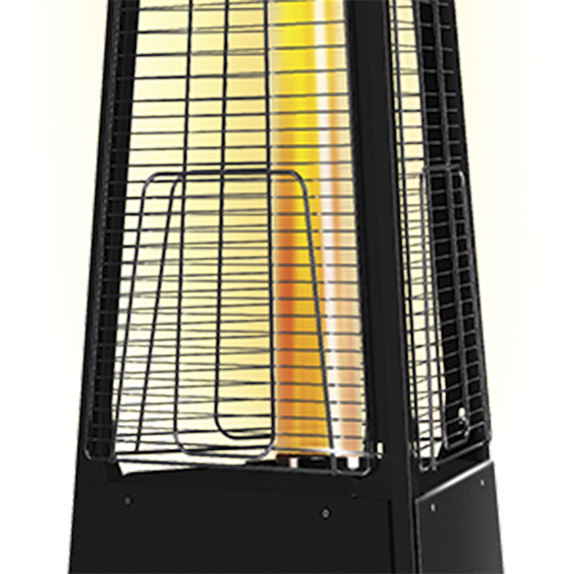 Такая техника широко используется как в общественных местах, так и на частных территориях. Наличие колесиков позволяет быстро переместить агрегат в любую точку ровной площадки. За устойчивость отвечает встроенная защита от опрокидывания. Прибор греет не только качественно, но и эффектно: пламя высотой до 1,5 м горит внутри колбы из термоустойчивого закаленного стекла.