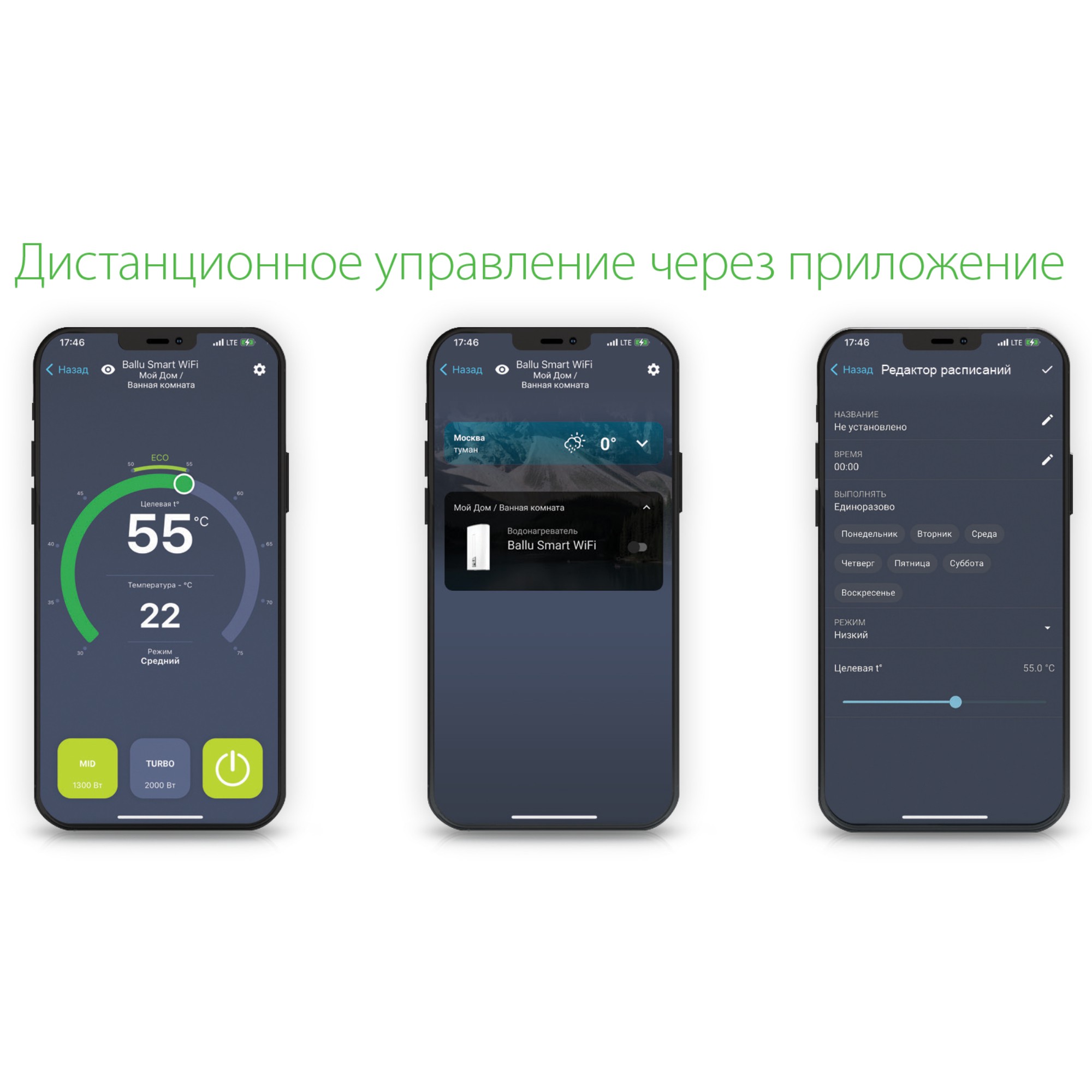 Электрические накопительные водонагреватели SMART WiFi с баком из нержавеющей стали – это «умные» и экономичные модели, которыми легко управлять через Интернет при покупке Wi-Fi-модуля (приобретается отдельно). Все режимы можно настроить в фирменном мобильном приложении. С его помощью можно удаленно управлять временем и температурой нагрева воды, включать или выключать прибор. Управляя по индивидуальному графику, включая нагрев только в самые «дешевые» часы (трехтарифный счетчик), можно сэкономить до 55% электроэнергии и окупить прибор за 2-3 года активной эксплуатации, в зависимости от литража. Модели SMART WiFi имеют плоский корпус белого или серебристо-серого цвета (Titanium edition) и допускают универсальный монтаж – горизонтально или вертикально. Все водонагреватели Ballu производятся по новейшим технологиям. Долговечность эксплуатации обеспечивается шестиступенчатым контролем качества сварочных швов внутреннего бака и Life-тестом на 160 000 циклов нагрева. Надежность внутреннего бака подтверждается премиальной гарантией – 8 лет. Выбрать прибор по выгодной стоимости, познакомиться с отзывами удобно в официальном интернет-магазине.