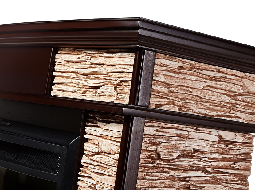 - Покрытие: искусственный камень "сланец скалистый", натуральный шпон дерева