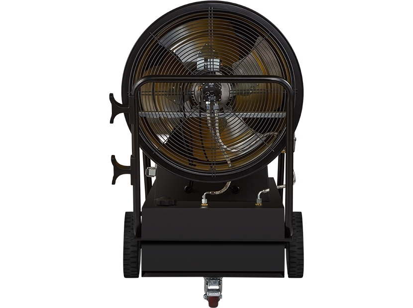 Воздухонагреватель дизельный прямого нагрева Ballu BHDP-120 серии Tundra предназначен для обогрева нежилых помещений и локального прогрева рабочих поверхностей. Тепловая мощность прибора составляет 120кВт. При работе дизельной пушки воздушный поток, проходя через защитную решётку – втягивается в камеру сгорания. Там он смешивается с распылённым форсункой дизельным топливом, которое при помощи мощного насоса под высоким давлением подаётся из топливного бака, образуя воздушно – топливную смесь. При помощи 12kV электродов смесь поджигается и сгорает, а затем - выбрасывается наружу, смешиваясь с продуктами сгорания и с основной массой поступаемого воздуха, тем самым нагревая его. Теплоотражающий экран, расположенный в передней торцевой части корпуса прибора- служит препятствием для вырывающегося открытого пламени и обеспечивает равномерный прогрев помещения либо обогреваемой рабочей поверхности.