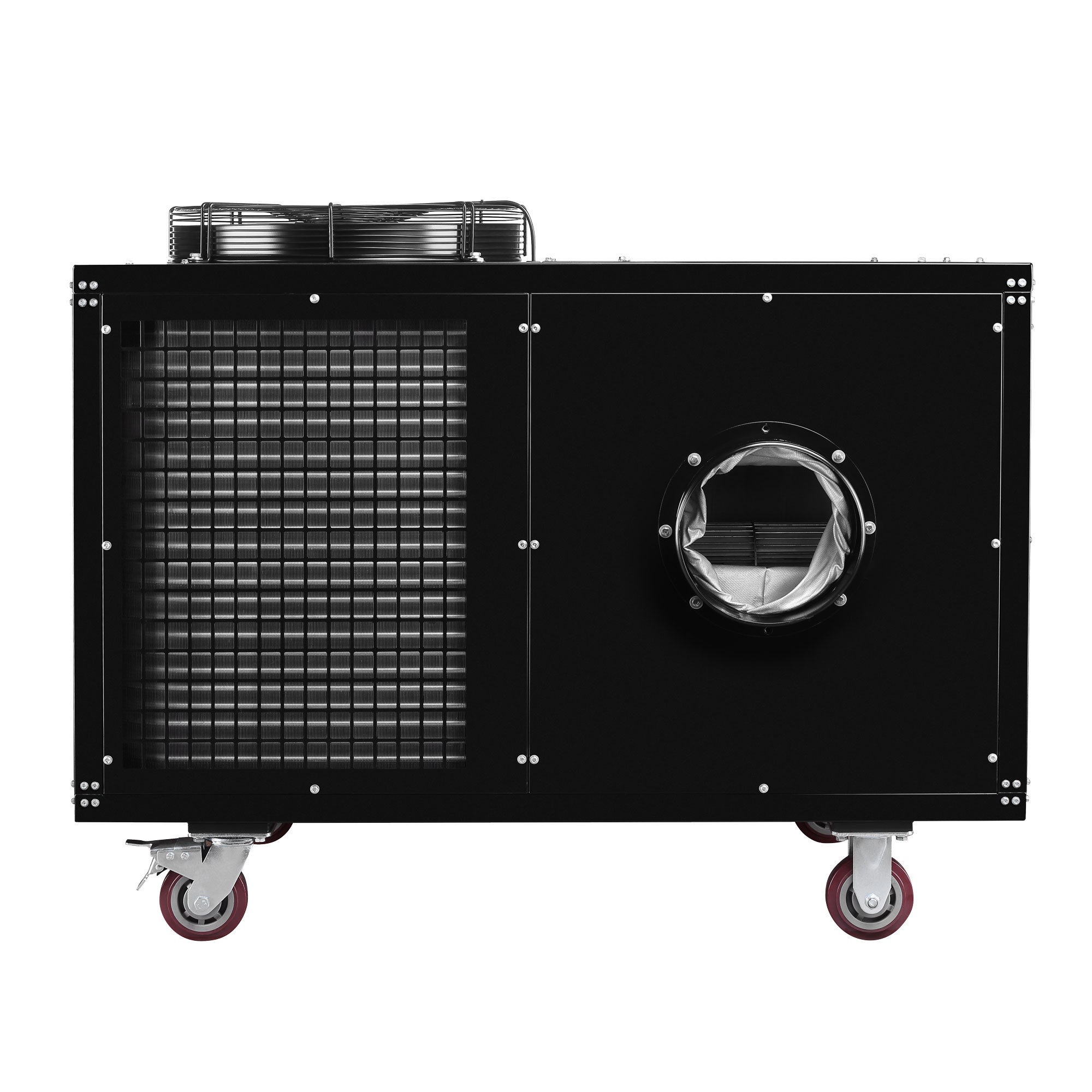 Промышленный мобильный кондиционер выполнен в металлическом ударопрочном корпусе, оснащен шасси и ручками для перемещения. Диапазон рабочих температур для такого оборудования – от +18 до +45°C.
