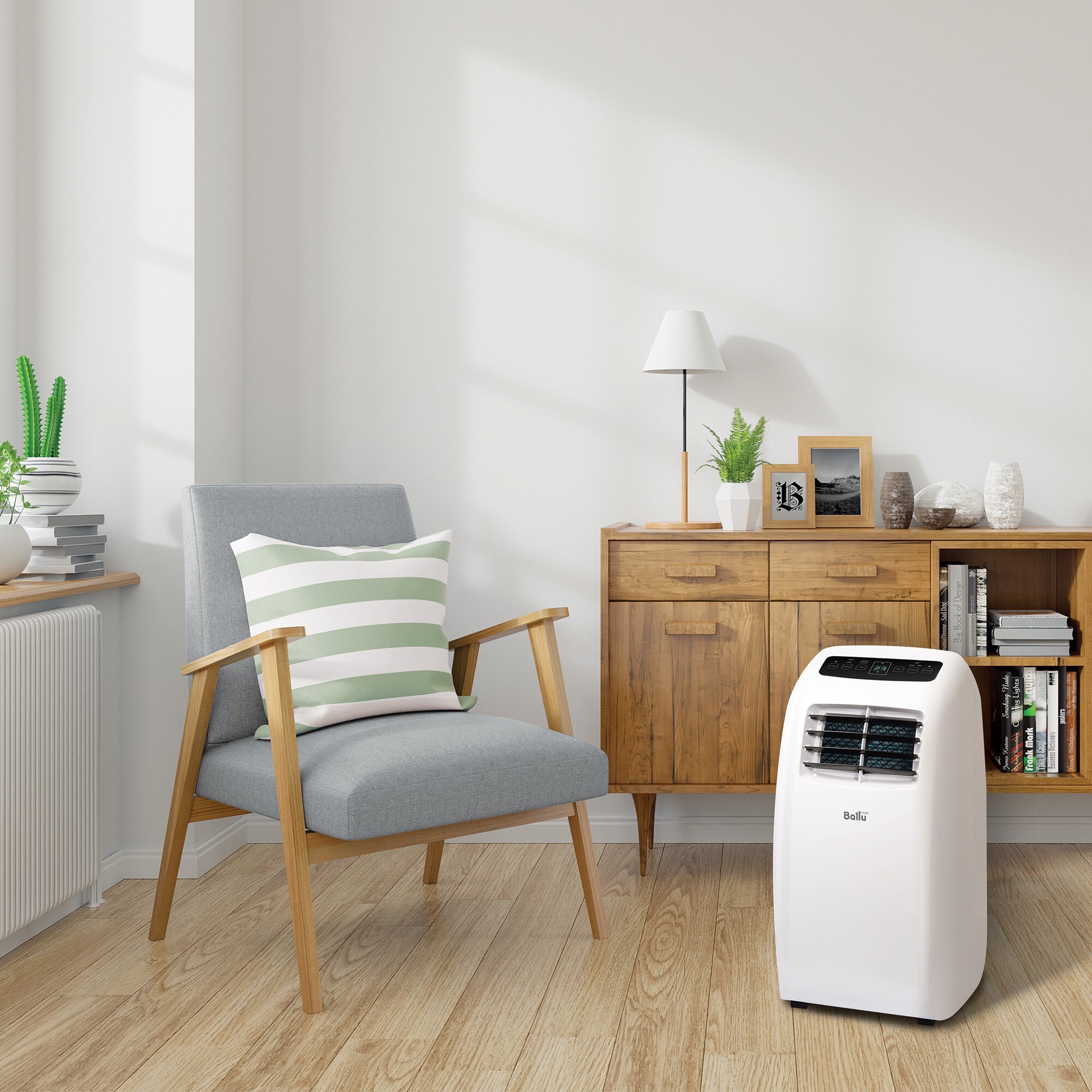 Легкий и компактный (высота прибора – всего 67 см, ширина – 38 см) мобильный кондиционер Ballu BPAC-07 CP_22Y мощностью 2,05 кВт способен охладить помещение площадью до 16 м².