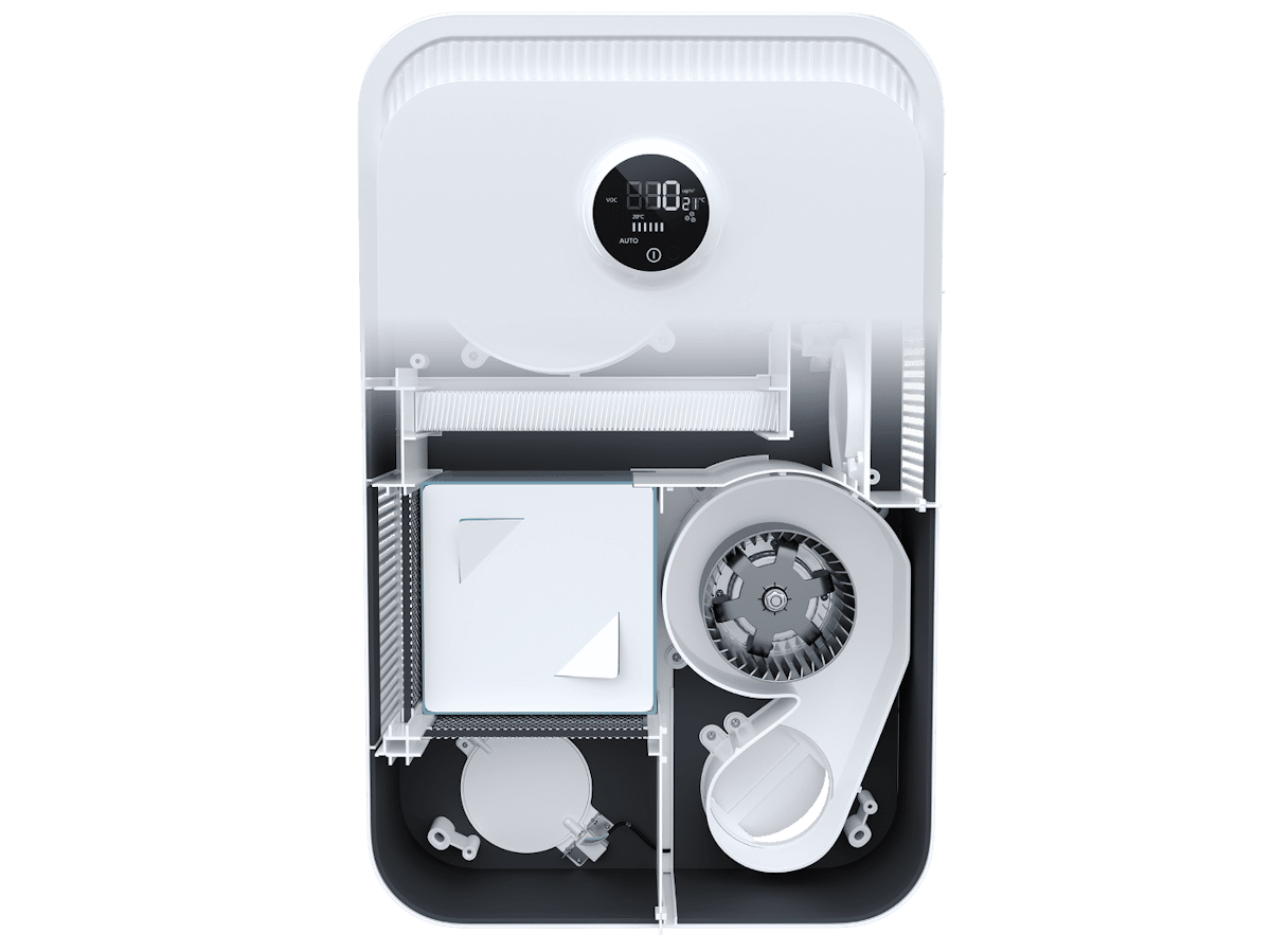 Комбинация предварительного фильтра класса G3 и сверхтонкого фильтра класса H12 позволяет задерживать до 99,5 % частиц загрязнений и обеспечивает максимальную эффективность очистки. Также возможно контролировать чистоту воздуха в режиме реального времени с помощью встроенного датчика VOC (Volatile organic compounds — летучих органических веществ). Кроме этого, установка FUJI оснащена ионизатором, который насыщает воздух отрицательно заряженными частицами. Высокая концентрация данных частиц улучшает сон, повышает сосредоточенность, работоспособность и настроение.