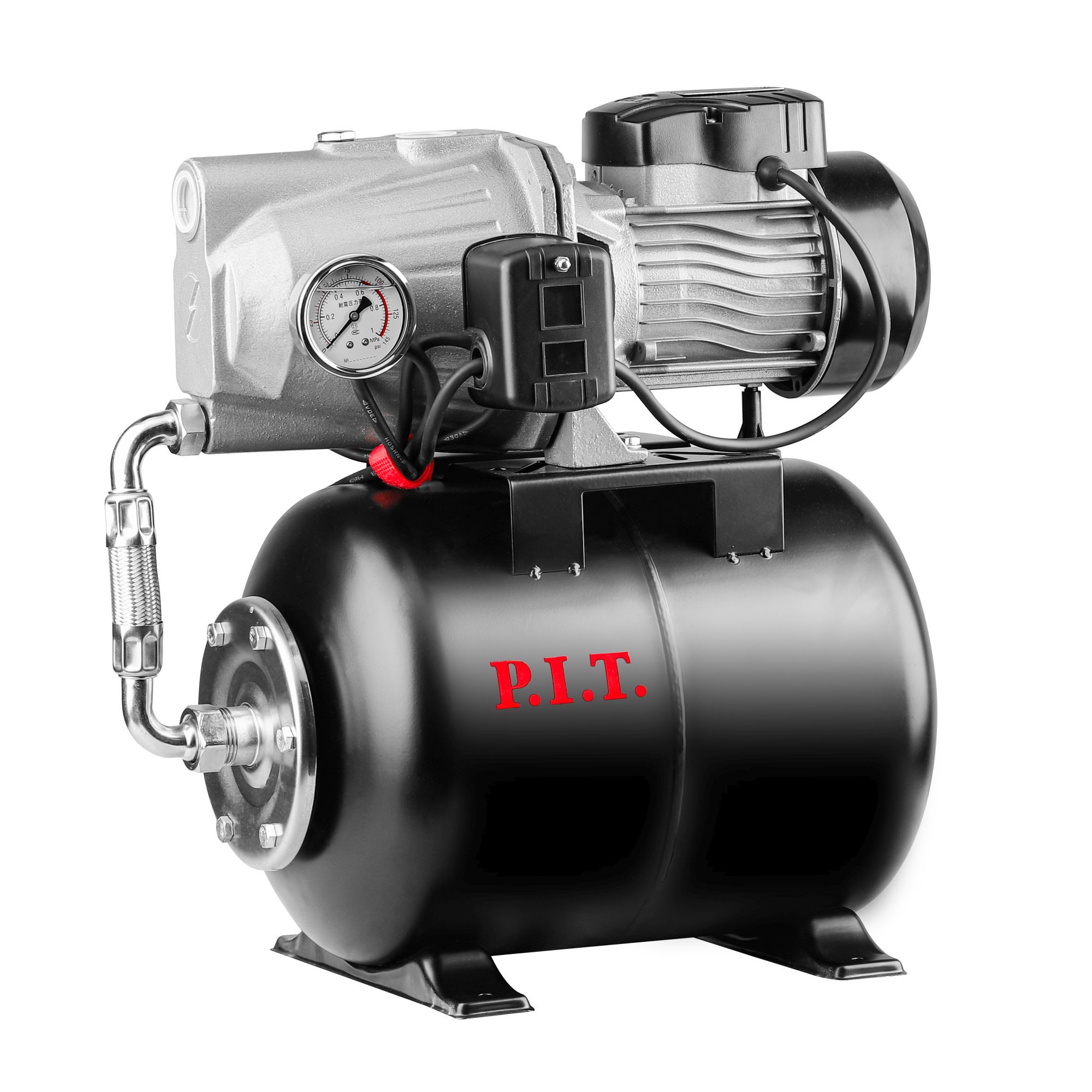 Насосная станция POG750-P предназначена водоснабжения домов и загородных участков. Объем резервуара составляет 24 л. Станция автоматически поддерживает давление, что обеспечивает бесперебойную работу. Термозащита двигателя предохраняет аппарат от перегрузок. Мощность двигателя 750 Вт, производительность – 46 л/мин. Корпус выполнен из чугуна, который защищает станцию от повреждений. Наличие манометра позволяет своевременно контролировать уровень давления воды на выходе.