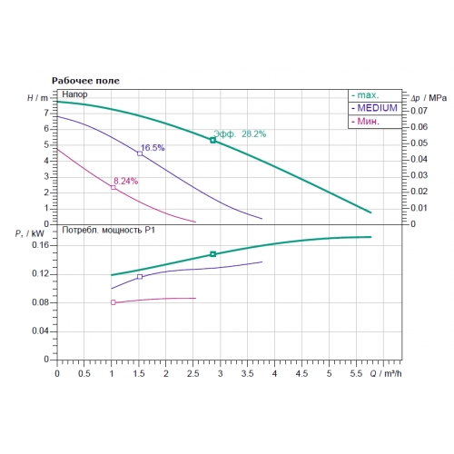 6 Номинальный напор [м] при подаче Q = 0 м³/ч