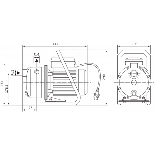 Переносной самовсасывающий одноступенчатый горизонтальный струйный насос для перекачивания воды в режиме всасывания и подвода. Напрямую присоединенный фланцами электродвигатель однофазного или трехфазного тока; в исполнении для однофазного тока со встроенным термическим защитным выключателем электродвигателя и конденсатором, а также отдельным выключателем ВКЛ./ВЫКЛ. Насос готов к подключению и включает в себя несущую раму и соединительный кабель длиной 2 м со штекером с защитным контактом; идеально подходит для переносной эксплуатации в саду или для различных увлечений. В исполнении для трехфазного тока подключение выполняется через клеммную коробку.
