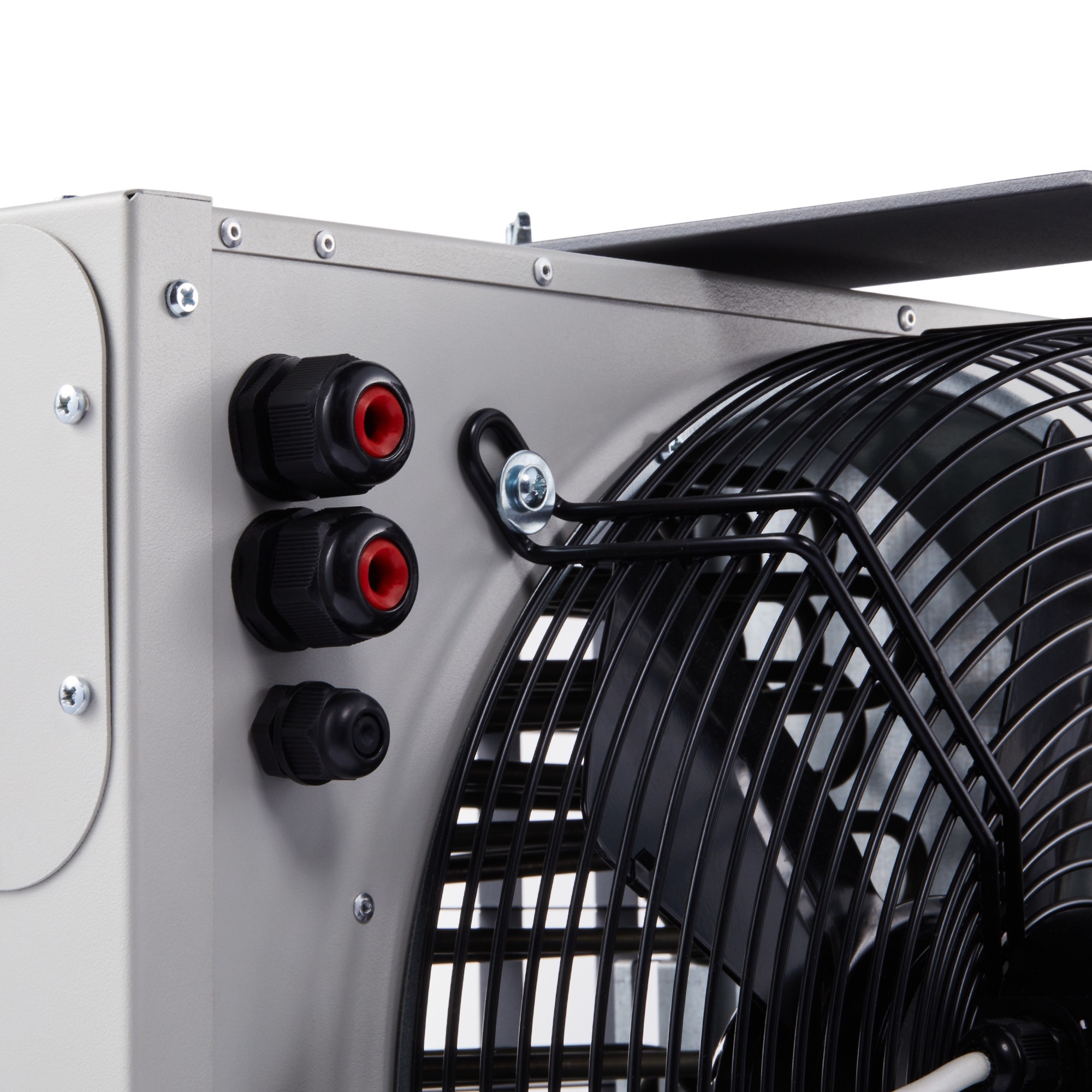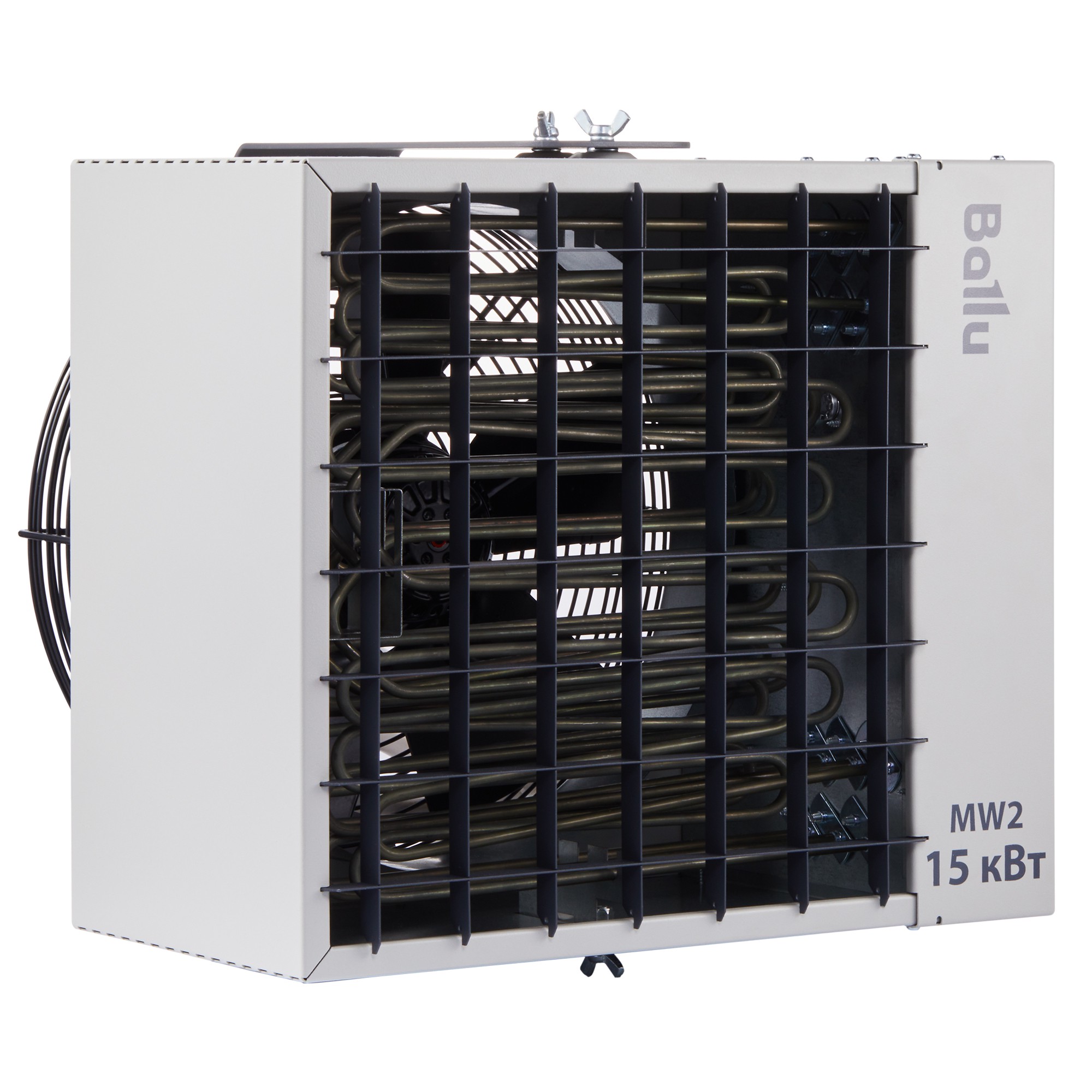Специализированная серия подвесных электрических промышленных тепловентиляторов MW2 разработана для стационарного отопления помещений без подключения к теплосети: складских, коммерческих и промышленных помещений. Повышенная пылевлагозащита IP54 позволяет использовать приборы во влажных помещениях и на открытых площадках без навеса. Благодаря поворотному кронштейну, входящему в комплект поставки, угол обдува тепловентилятора можно регулировать в двух плоскостях. Новая конструкция передней решетки более равномерно распределяет выходящий поток воздуха. Тепловентиляторы комплектуются цифровым пультом управления BRC-D с возможностью подключения и управления по ModBUS до 64 приборов. Кабель управления (3 метра) в комплекте с пультом.
