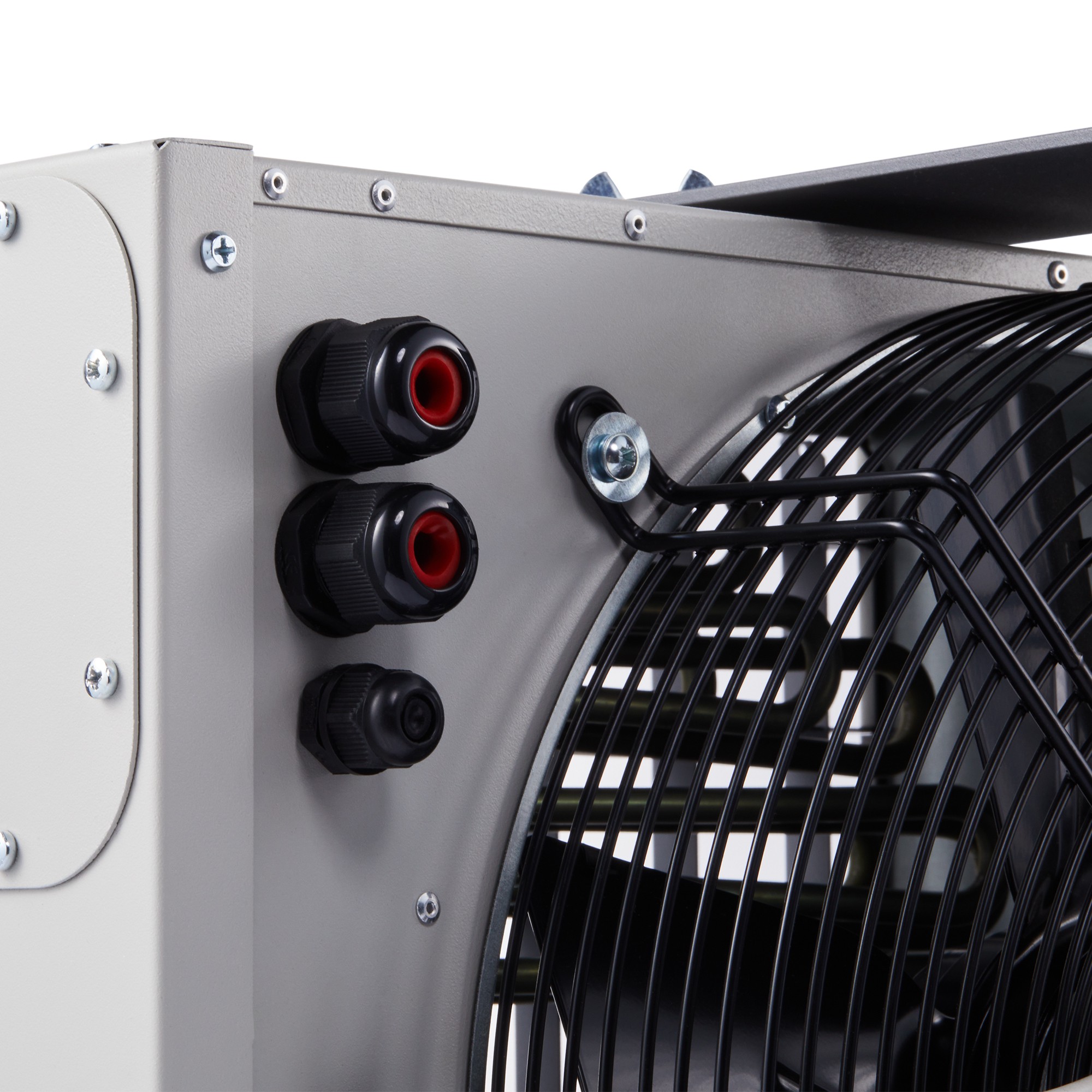 Специализированная серия подвесных электрических промышленных тепловентиляторов MW2 разработана для стационарного отопления помещений без подключения к теплосети: складских, коммерческих и промышленных помещений. Повышенная пылевлагозащита IP54 позволяет использовать приборы во влажных помещениях и на открытых площадках без навеса. Благодаря поворотному кронштейну, входящему в комплект поставки, угол обдува тепловентилятора можно регулировать в двух плоскостях. Новая конструкция передней решетки более равномерно распределяет выходящий поток воздуха. Тепловентиляторы комплектуются цифровым пультом управления BRC-D с возможностью подключения и управления по ModBUS до 64 приборов. Кабель управления (3 метра) в комплекте с пультом.