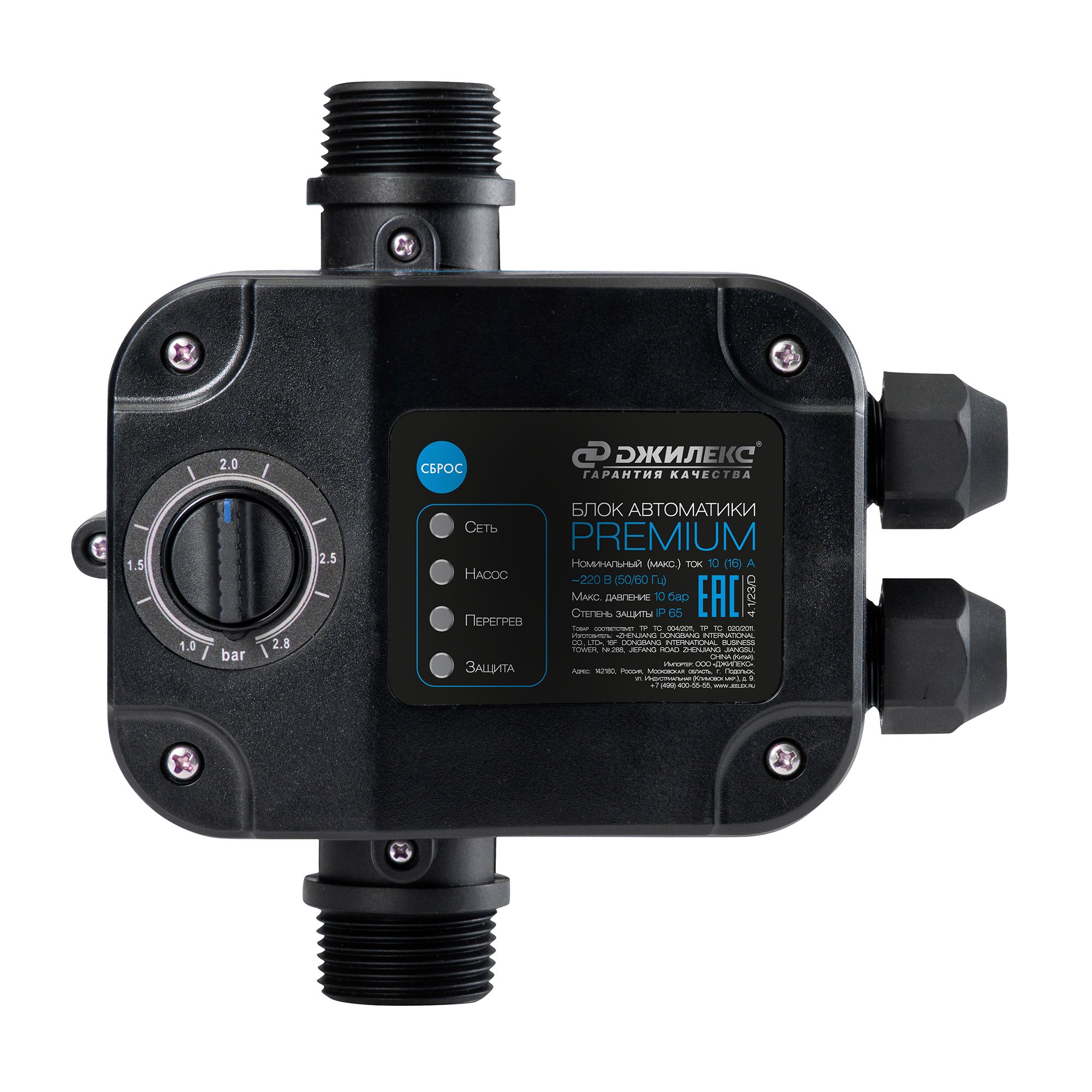 Блок автоматики PREMIUM предназначен для автоматического управления погружными и поверхностными насосами. В конструкцию встроена защита от "сухого хода", работы "в тупик" и перегрева.