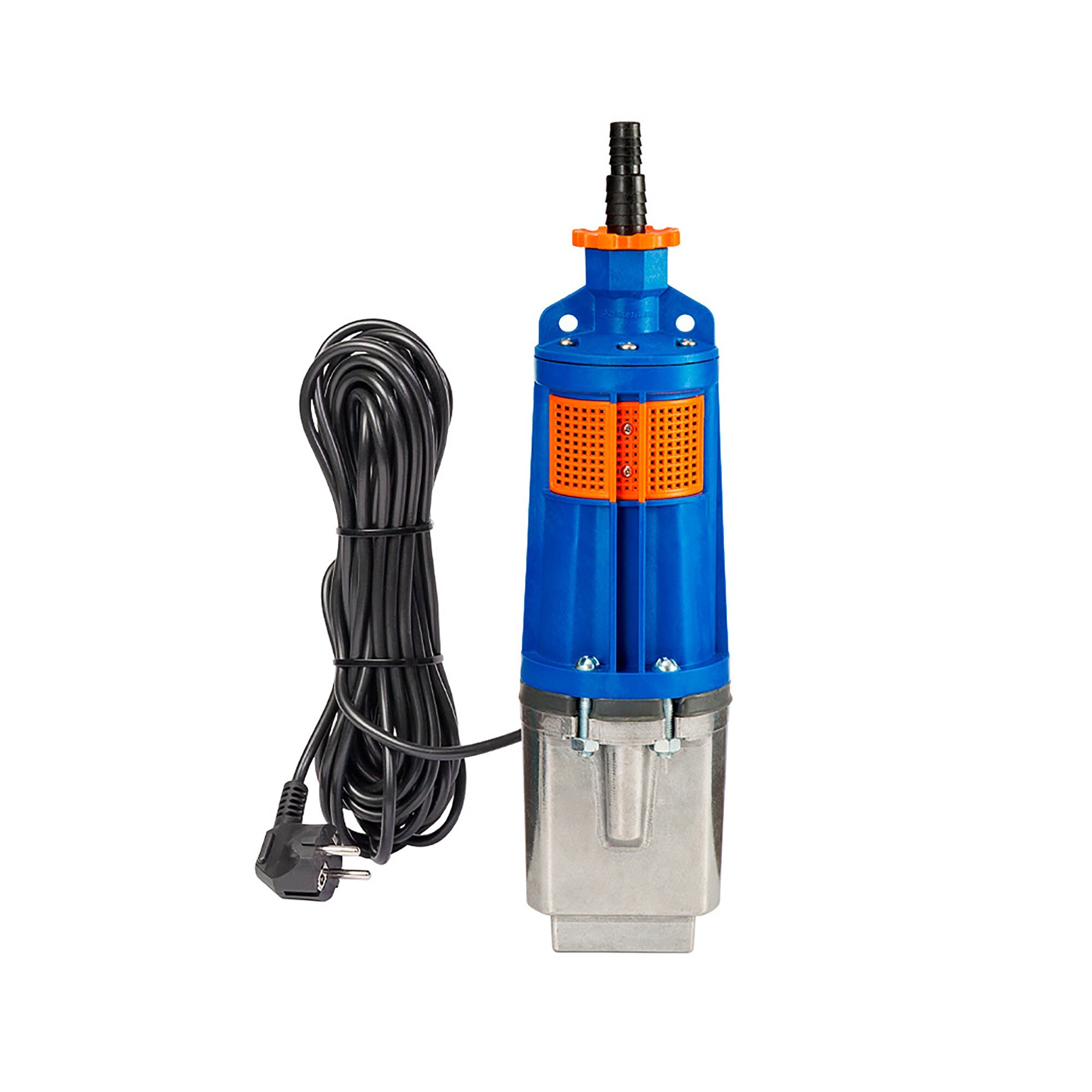 В верхней части симметрично расположены две проушины, которые позволяют подвесить насос в строго вертикальном положении. Помимо этого из крышки насоса выходит водостойкий кабель длинной 25 м с вилкой.