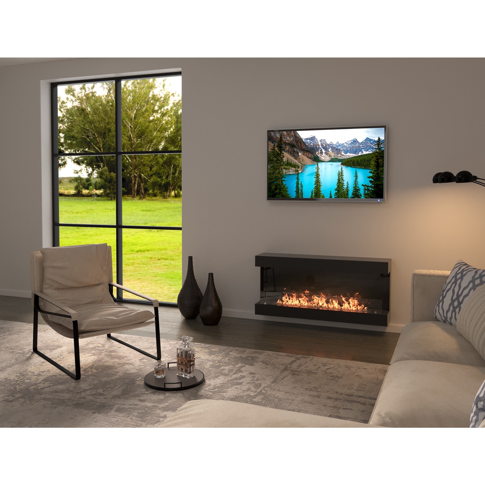 Биокамин Royal Thermo RTBFP-W120V View с ультрасовременным дизайном, исключающим боковые перегородки, раздвигает границы обзора до 180 градусов и превращает биокамин в настоящий арт-объект.