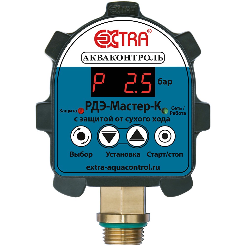 Электронное реле давления с гальванически изолированными выходами и максимальной конфигурацией функций для автоматизации включения/выключения скважинного/поверхностного насоса мощностью Р1, max - 2200 Вт, с защитой от "сухого хода". Устройство можно задействовать для непосредственного размыкания и замыкания цепи электропитания насоса.