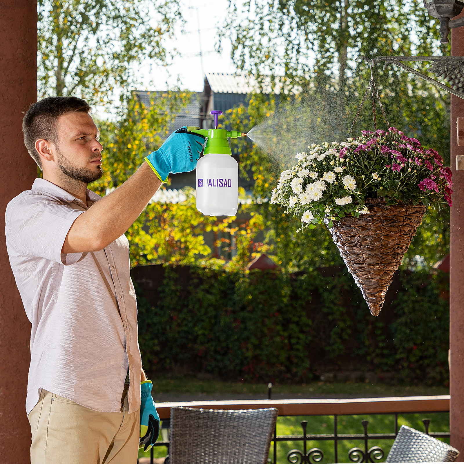 <p>Ручной опрыскиватель Palisad с насосом и баком объемом 1 л предназначен для ухода за садом и огородом. С его помощью можно обрабатывать растения пестицидами или удобрениями, вносить жидкую подкормку в почву и проводить микрополив. Необходимое давление в емкости создается при помощи помпового насоса. Опрыскиватель подойдет для ухода за декоративными и сельскохозяйственными растениями на приусадебном участке.</p><h2>Преимущества</h2><ul><li>Долговечность — пластиковые детали устойчивы к износу и механическим повреждениям, фильтр водозаборного шланга защищает форсунку от засорения.</li></ul><ul><li>Регулировка напора — можно подобрать оптимальный режим работы.</li></ul><ul><li>Возможность непрерывного полива — на ручке имеется специальный фиксатор.</li></ul>